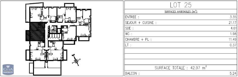 L'appartement se compose d'une entrée, un séjour avec balcon, une cuisine ouverte, aménagée, une chambre et une salle d'eau avec WC.