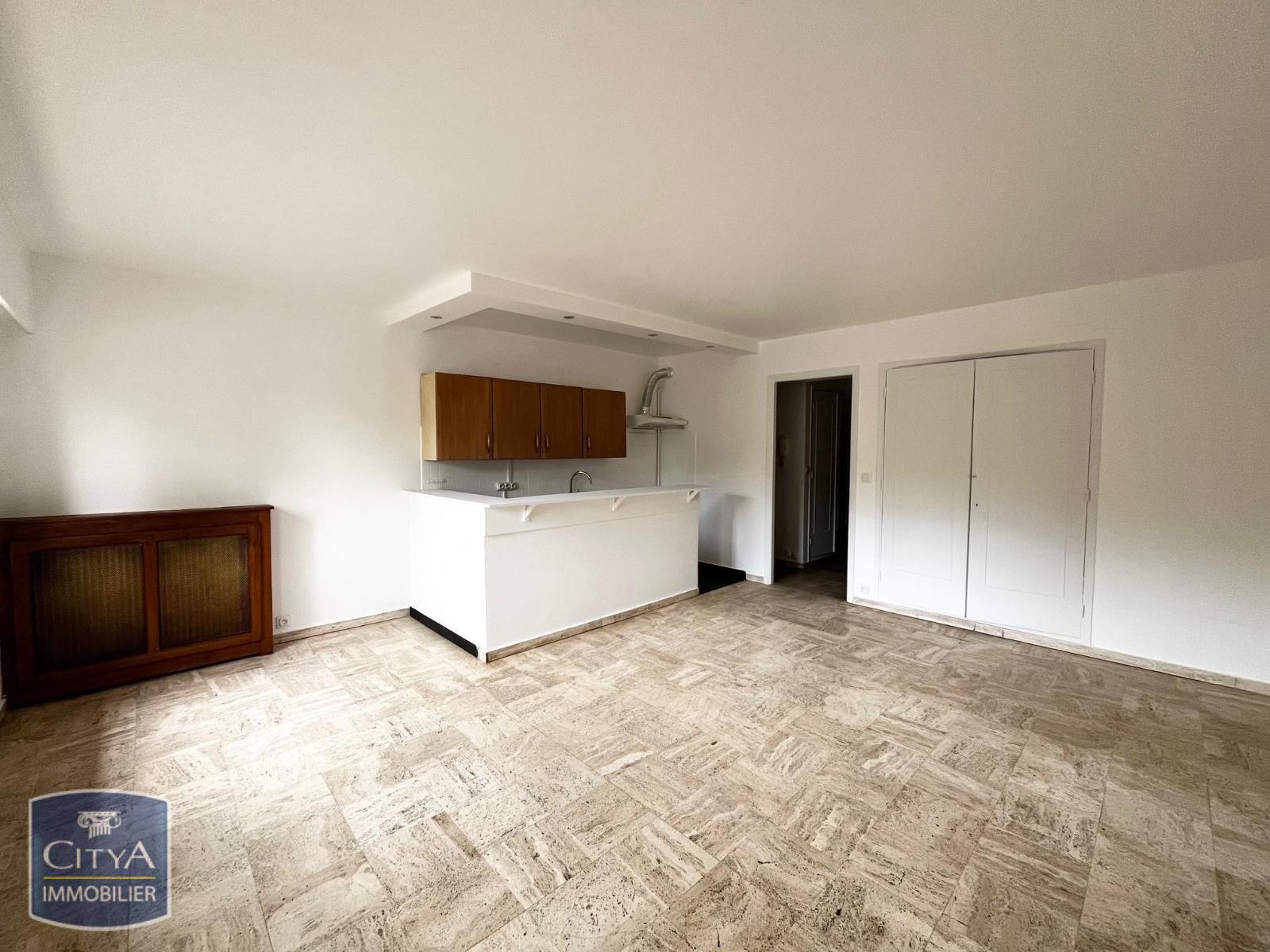 A LOUER - LE CANNET MAIRIE - Rue des Michels, dans une copropriété sécurisée, grand studio rénové de 36 m² en rez de chaussée, avec double vitrage, comprenant une entrée, une pièce principale avec une cuisine ouverte meublée et semi-équipée, une salle de bains...