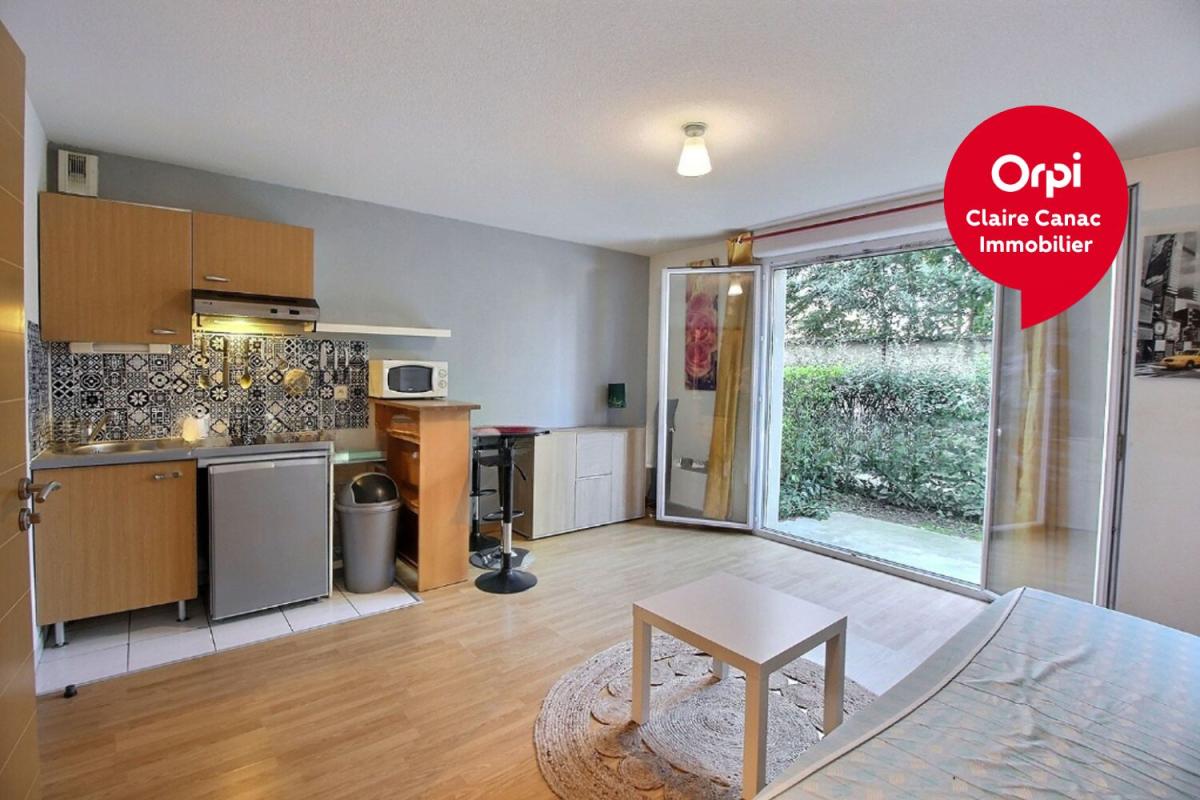 A louer, studio meublé rénové en 2021/2022 avec goût dans une résidence fermée. Ce logement comprend un coin kitchenette, une pièce de vie et une salle d'eau . La pièce de vie donne sur le balcon .