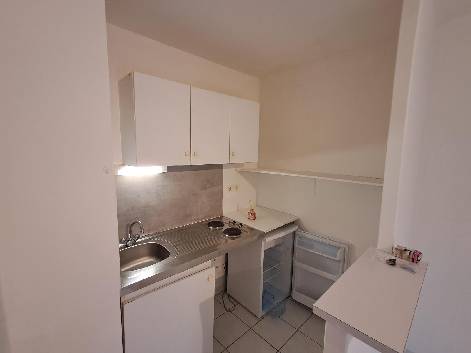 Appartement type studio au 2ème étage sans ascenseur, composé d'une pièce de vie avec rangement, un coin cuisine avec évier, plaques de cuisson et placard, une salle d'eau avec d...