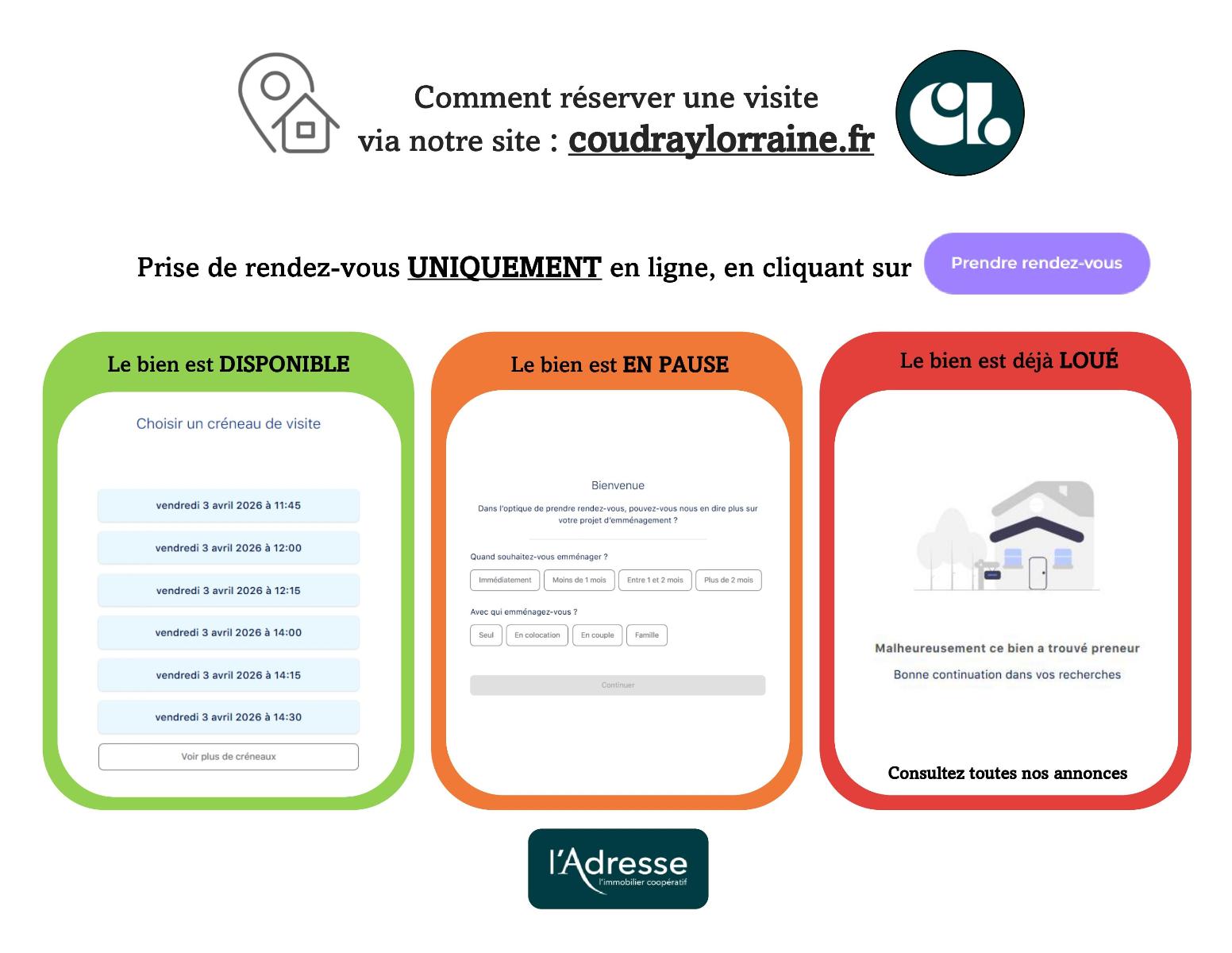 PRENEZ RENDEZ-VOUS 24/7; UNIQUEMENT EN LIGNE SUR NOTRE SITE : coudraylorraine fr
