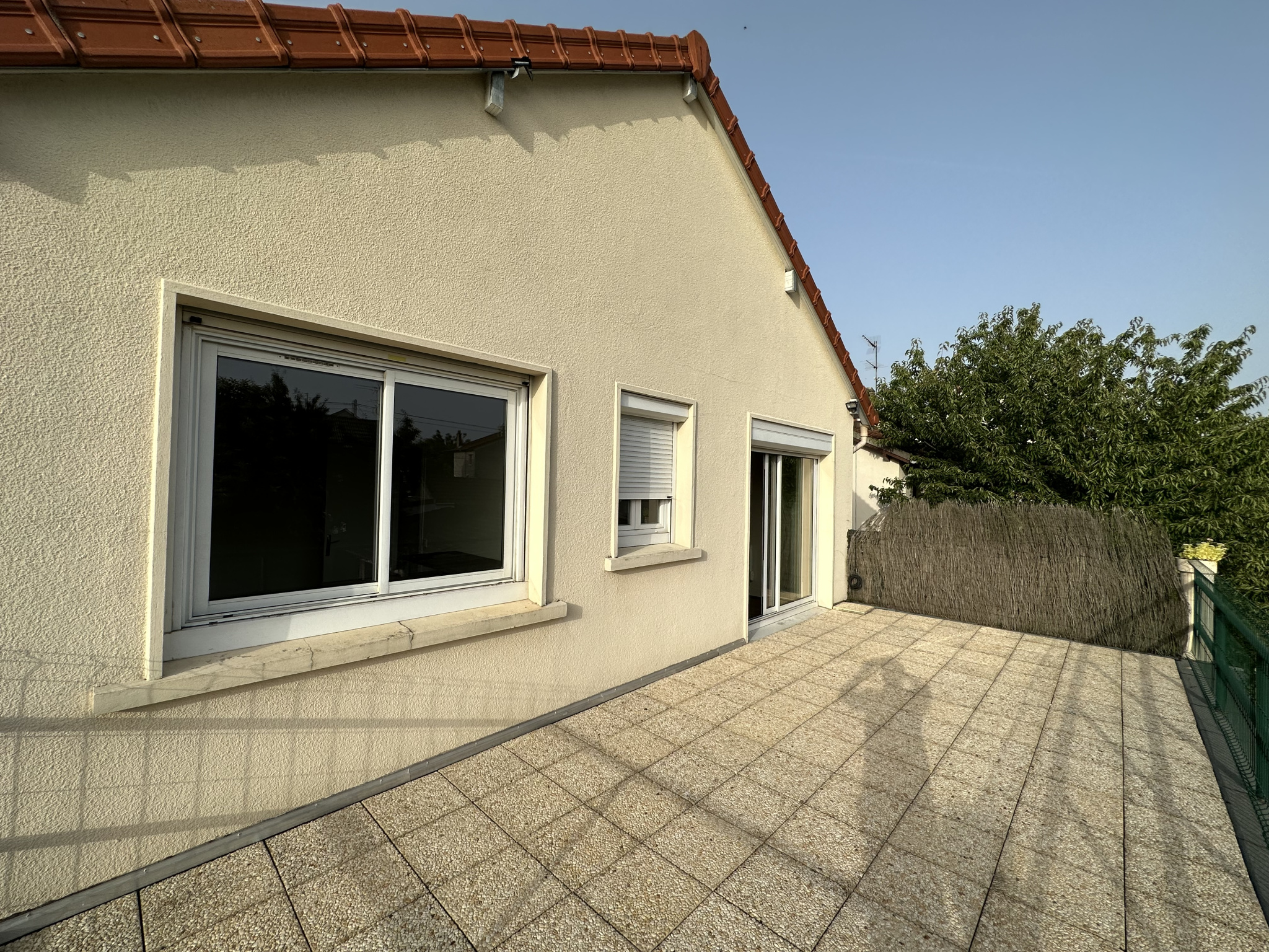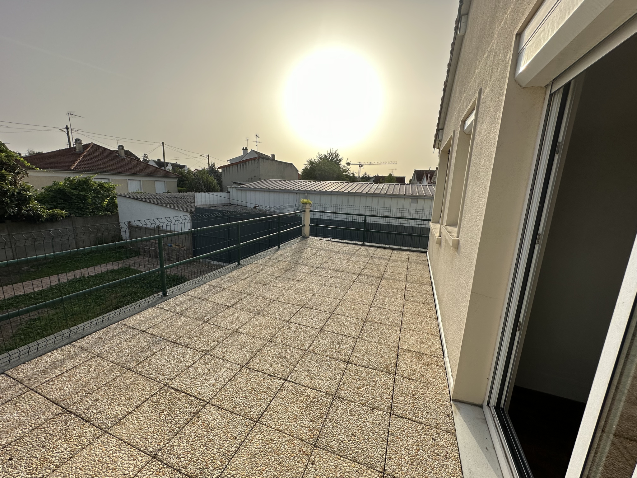 F3 de 60 m2 au 1er étage : Entrée, séjour, cuisine aménagée, salle de bains et wc, 2 chambres, terrasse 20m2. Parking extérieur. Libre