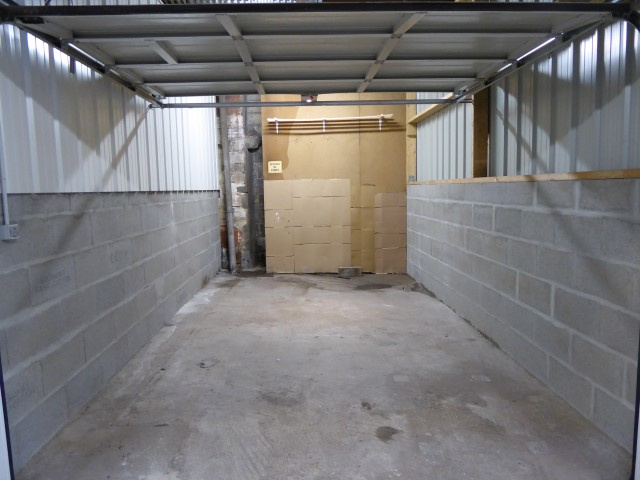 Garage fermé par 2 portes en tôle, sol ciment, murs et plafond en fibro 4m85 x 2m50 hauteur 2m25