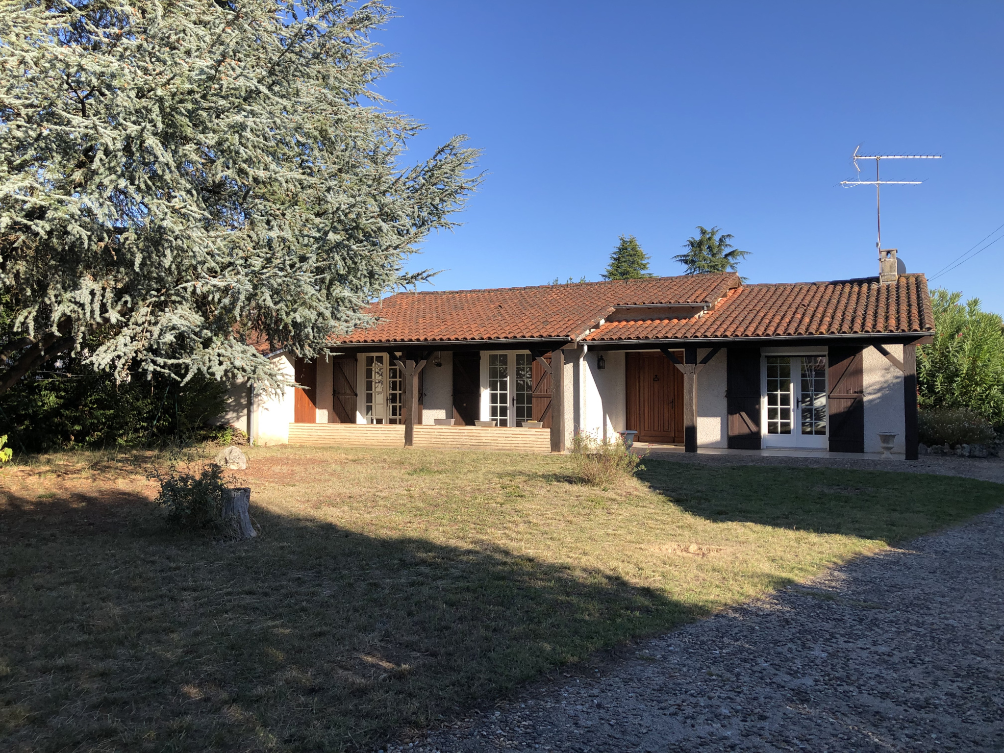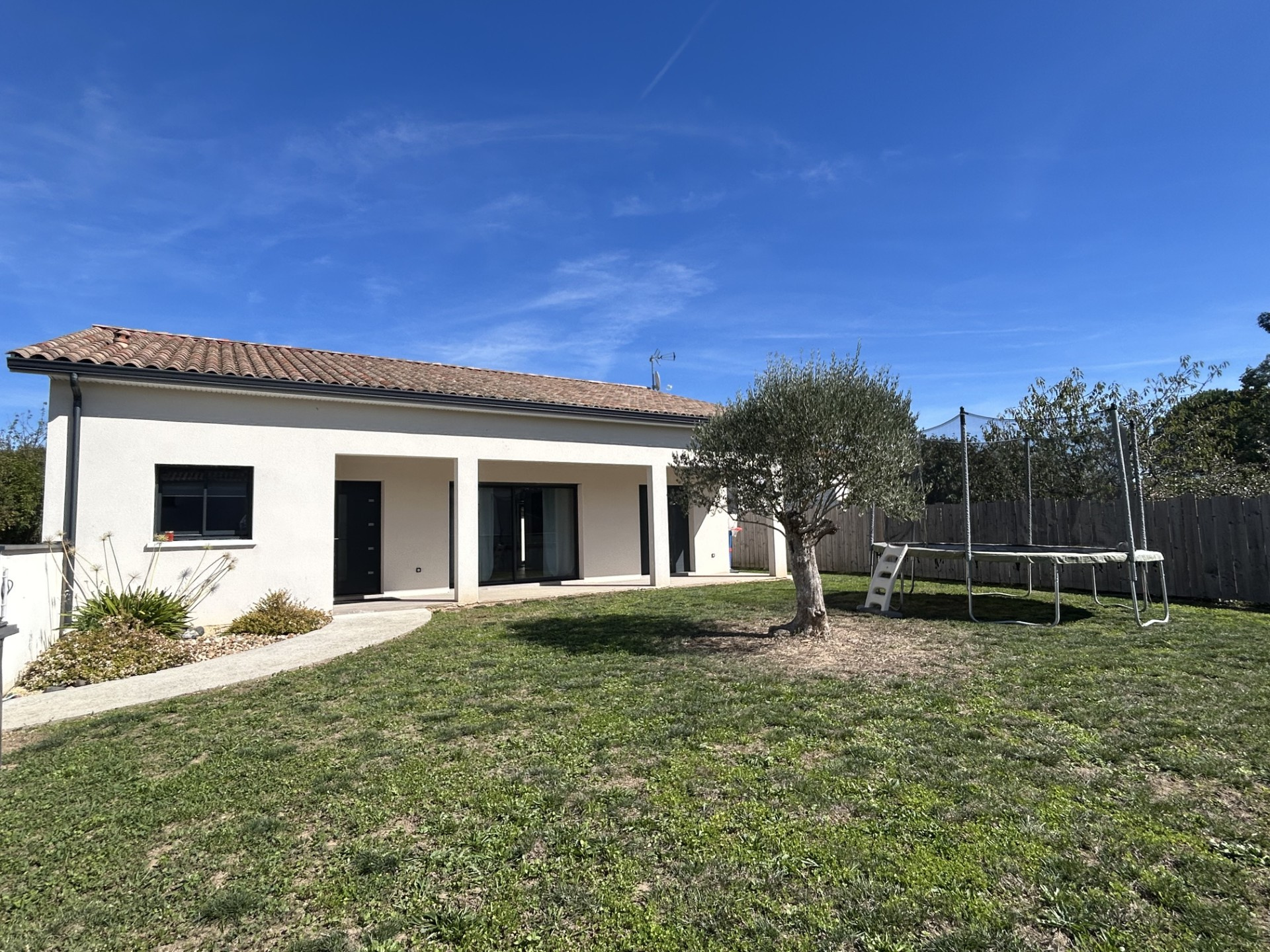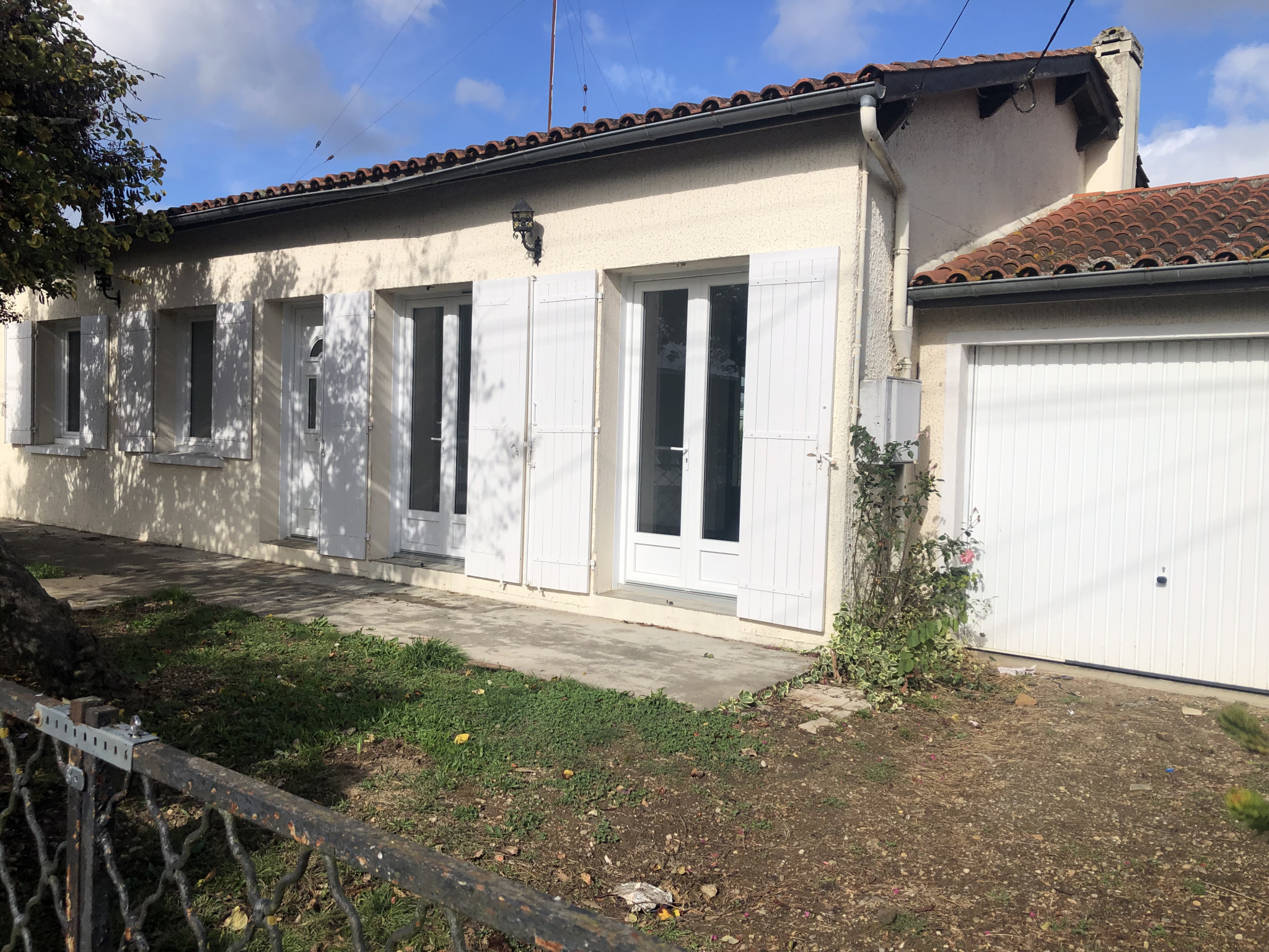 réf. 1443 : BIRAC SUR TREC , à louer maison individuelle comprenant salon séjour climatisé, grande cuisine équipée donnant sur une terrasse, 3 chambres, un bureau, salle de bains avec double vasque, baignoir eet douche, cellier, double garage. Beau terrain c...