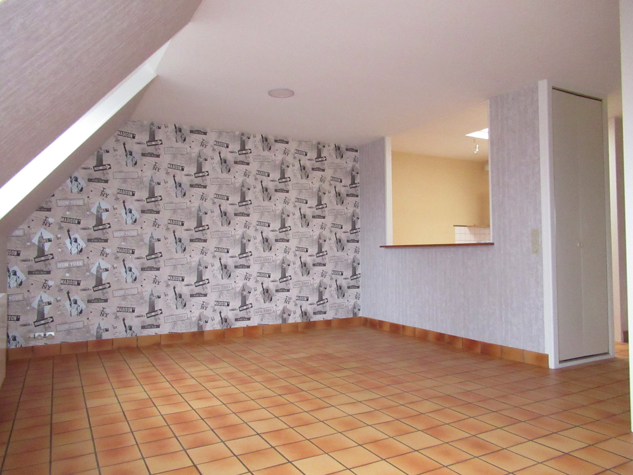 Au second étage d'un immeuble calme : charmant appartement mansardé comprenant grand séjour, espace cuisine aménagée (plaque, four, hotte), chambre, salle de bains et WC.