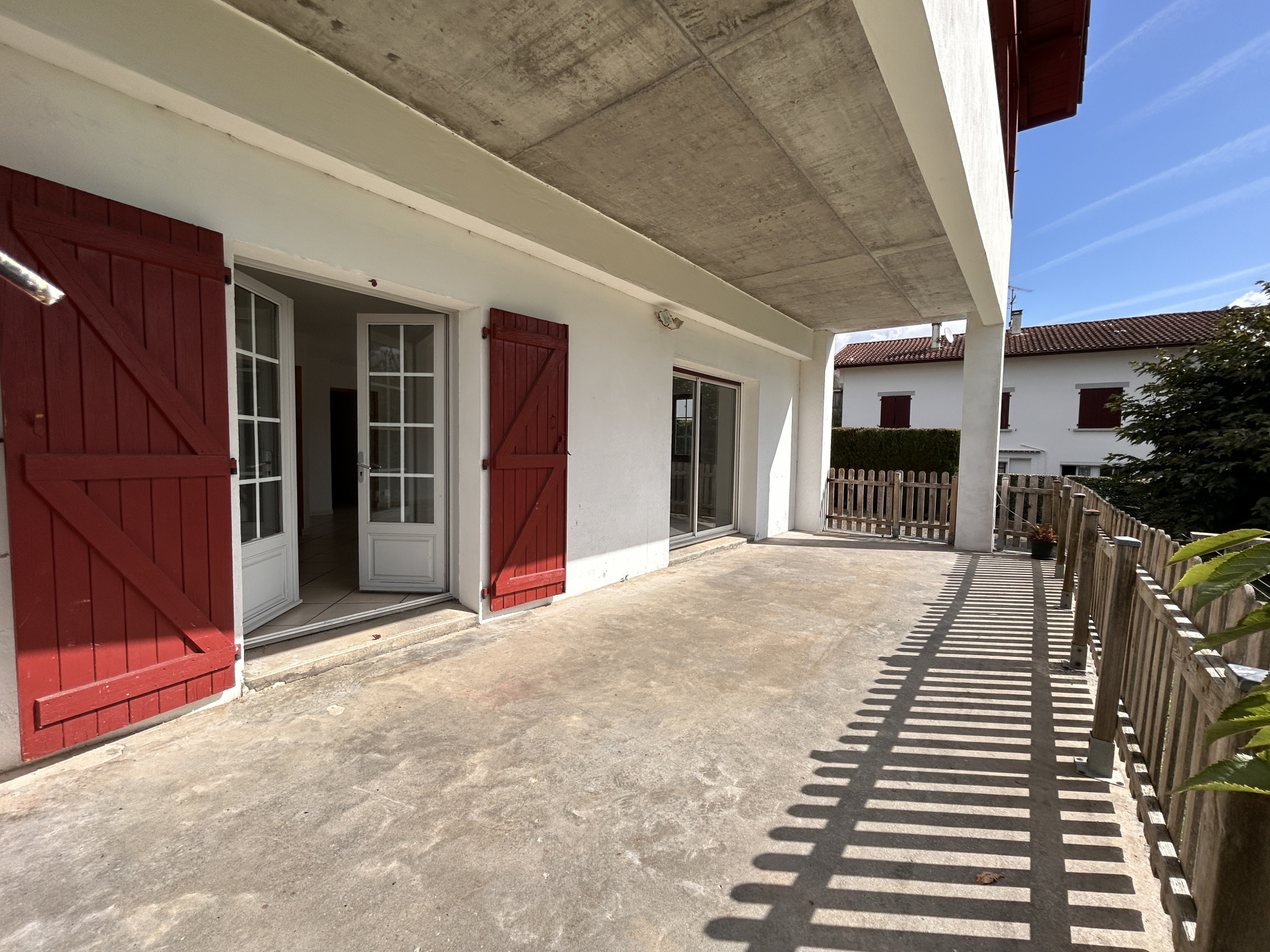 Logement de 98 m2 en rez-de-chaussée de maison: entrée, séjour sur agréable terrasse couverte 28 m2 exposée Sud, cuisine ouverte aménagée, 3 chambres avec placards, cellier, buanderie, salle de bains (douche et baignoire), wc. Chauffage électrique, double vitr...
