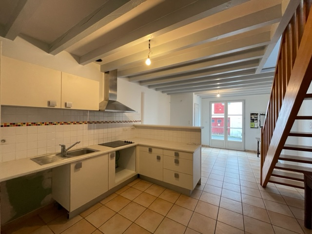 A louer, T4 en duplex, situé au 1er étage d'un immeuble dans une rue semi-piétonne de St Jean Pied de Port. Possibilité de stationner au pied de l'immeuble gratuitement aux horaires de saison.