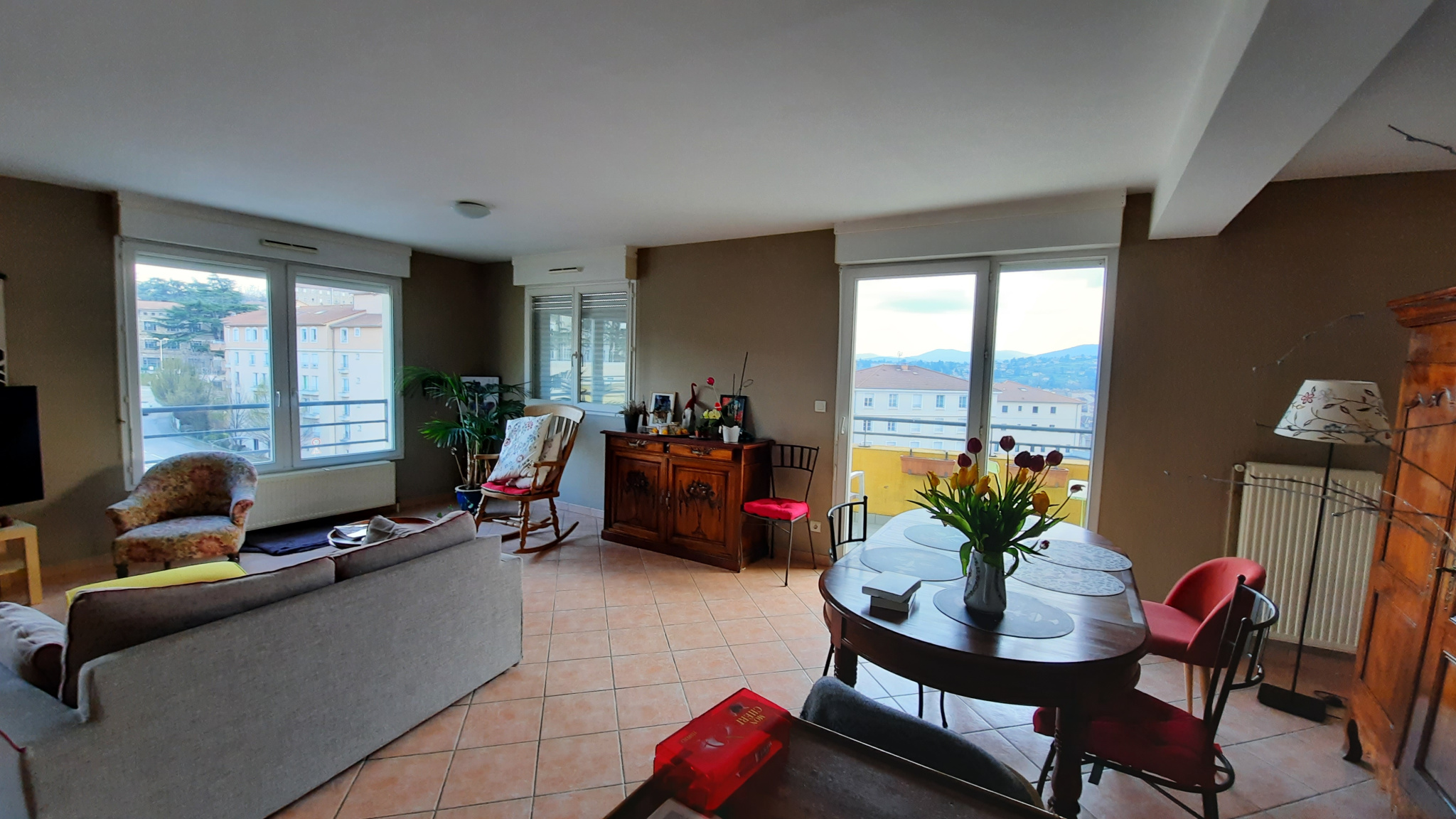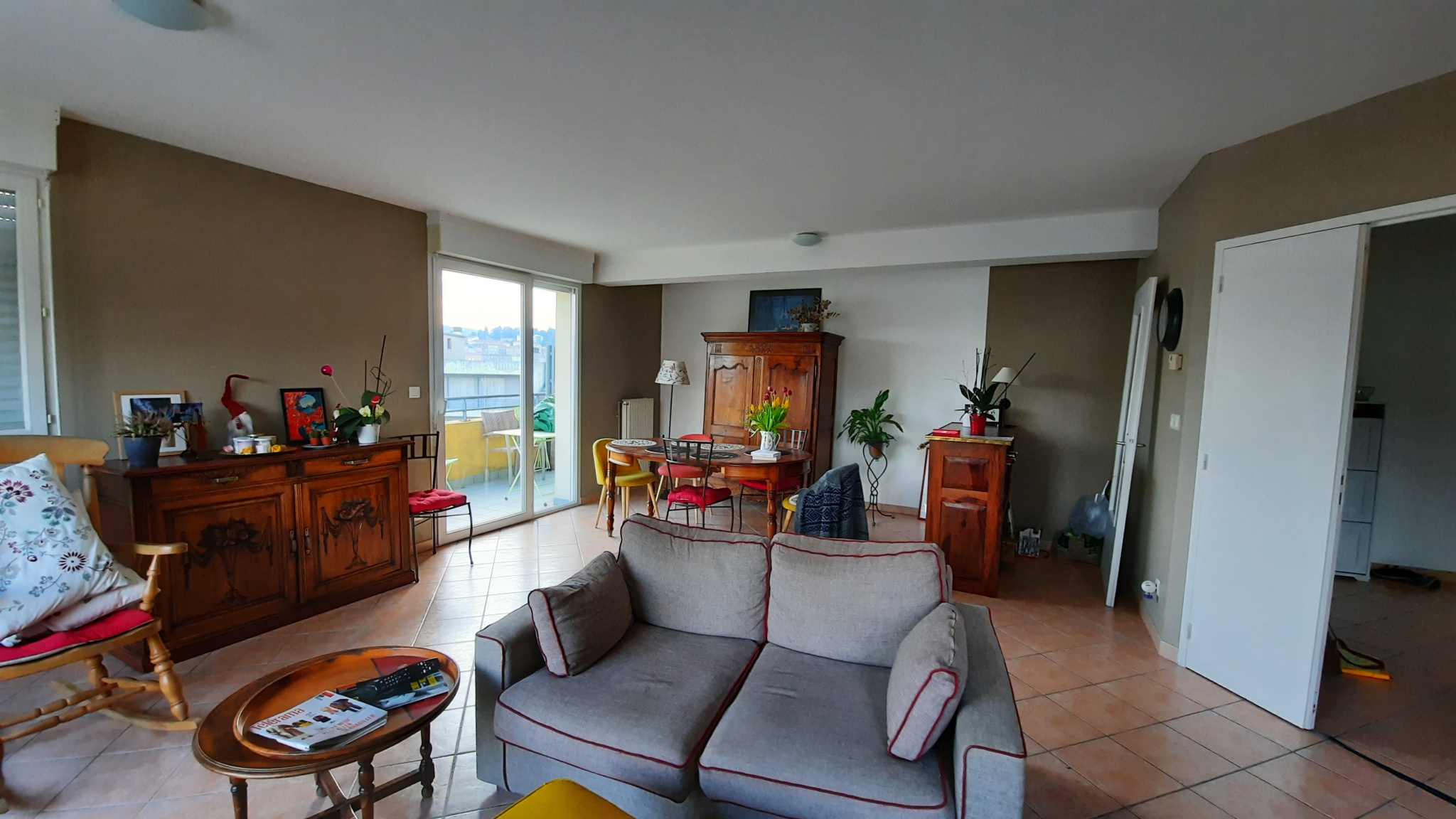 Dans le village de saint Julien Molin Molette - Appartement de type 3 traversant très lumineux avec balcon, composé d'un salon / séjour, une cuisine séparée meublée, une chambre avec petit balcon, wc, salle de bain.