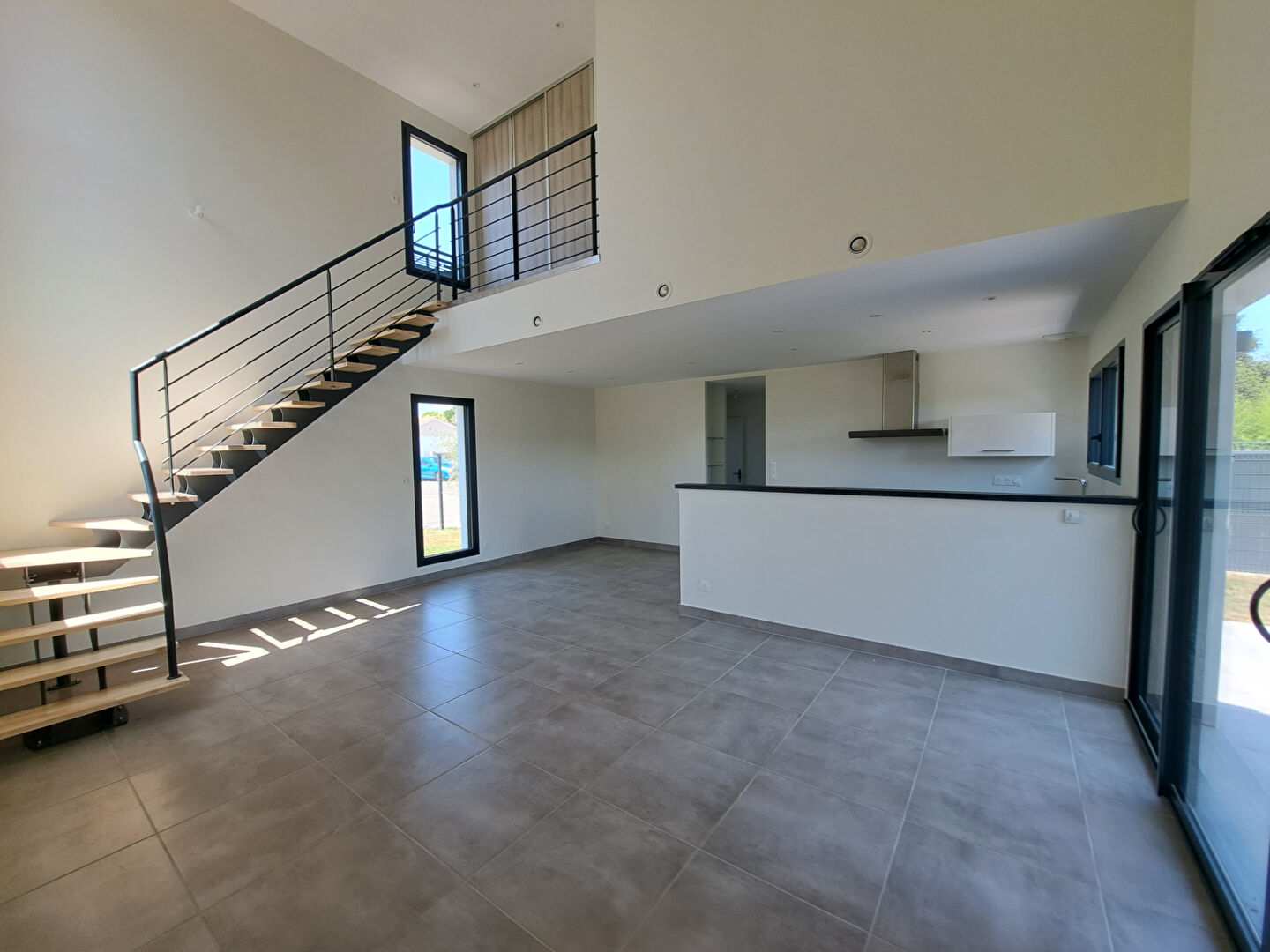 Maison de plain-pied récente, comprenant : un espace de vie avec salon et cuisine ouverte, un cellier attenant, 4 chambres avec placards intégrés, dont une suite parentale avec salle d'eau et dressing, un double garage avec mezzan...