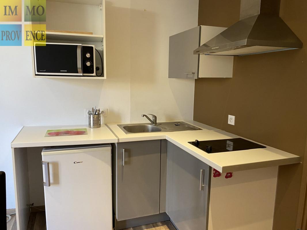 PROVENCE vous propose à la location ce studio meublé bénéficiant d'une belle luminosité, situé en centre ville de Pertuis, face à la médiathèque.