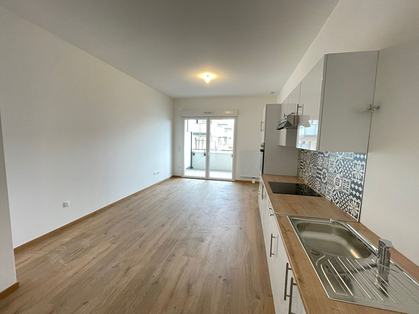 2 rue des Huguenots à Montigny les Metz : au rez-de-chaussée d'une résidence neuve, venez découvrir ce bel appartement de type F2. Il se compose d'une pièce de vie avec cuisine équipée ouverte sur séjour, d'un placard dans l'entrée, d'...