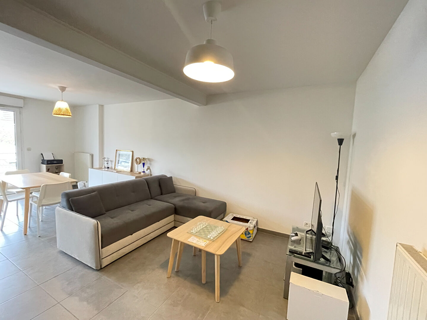 A proximité des commerces et à quelques mètres de la gare d'Uckange, charmant T3 au 2ème étage avec ascenseur comprenant : une entrée, séjour ouvert sur cuisine , une chambre, une salle de bains, un WC et un débarras.