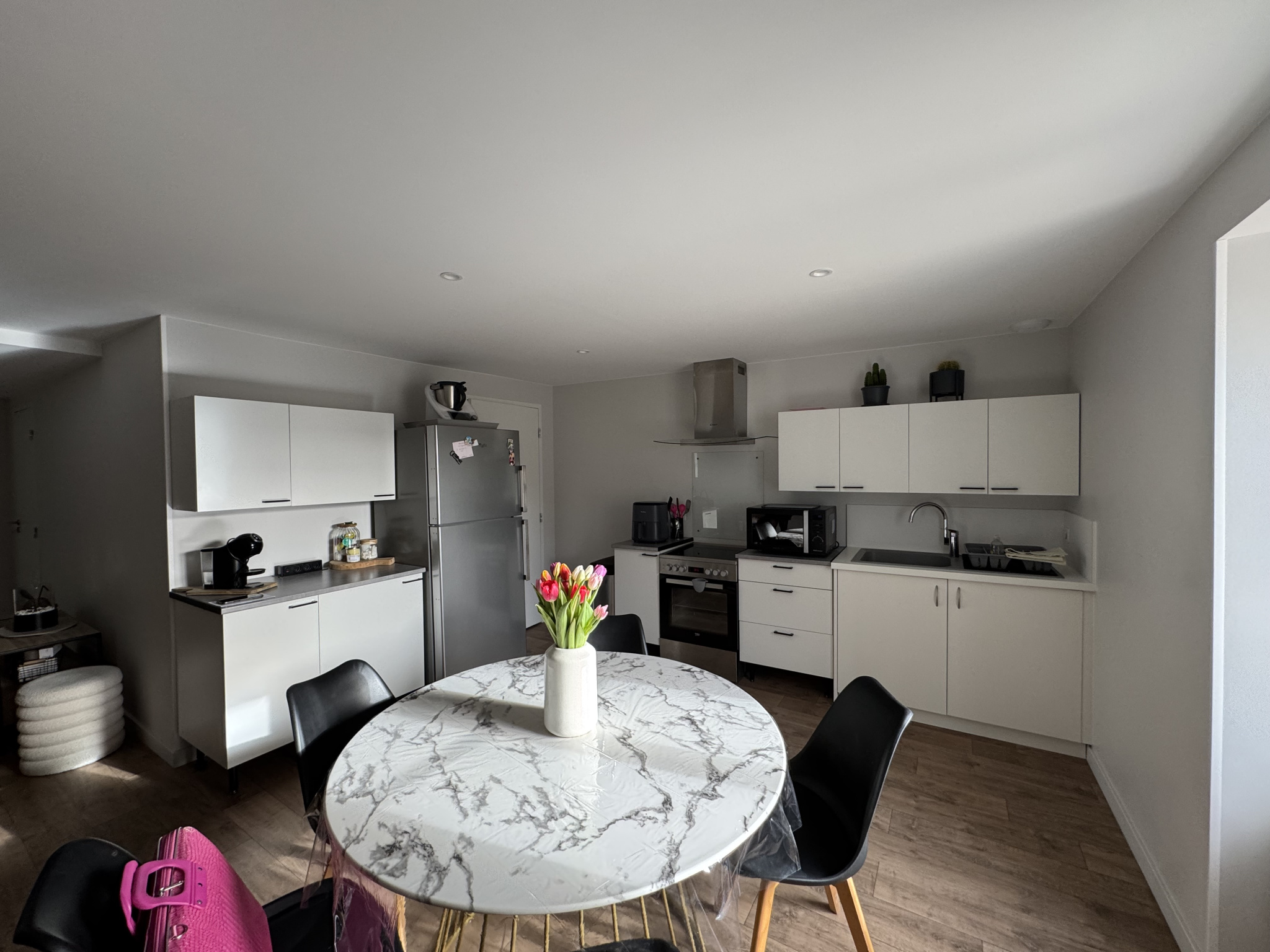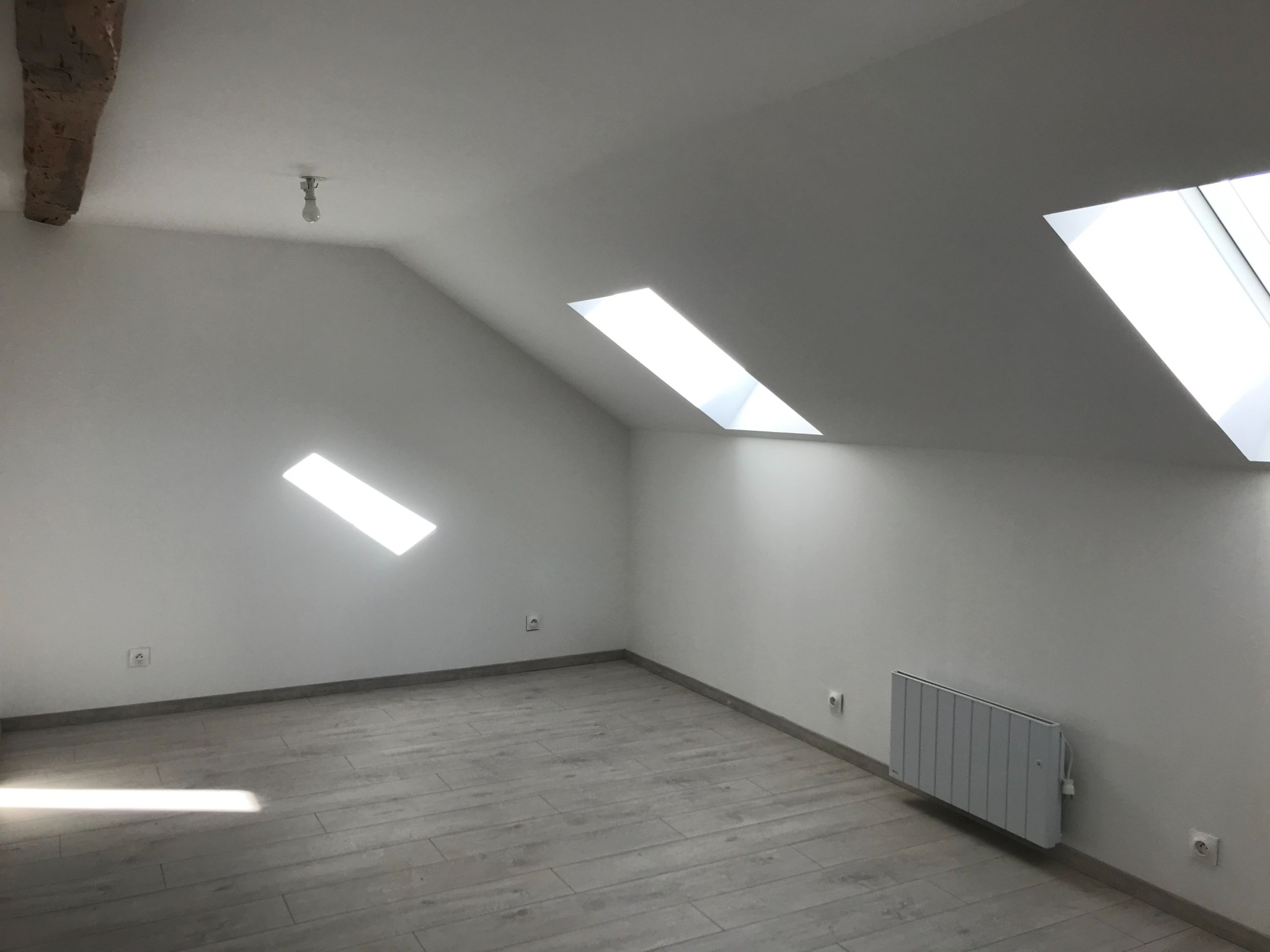 Au 1er étage d'un petit immeuble Cousançois, studio meublé composé d'une pièce principale comprenant coin cuisine équipée, table haute avec tabourets, canapé convertible, meubles de rangements, et d' une salle d'eau + WC.