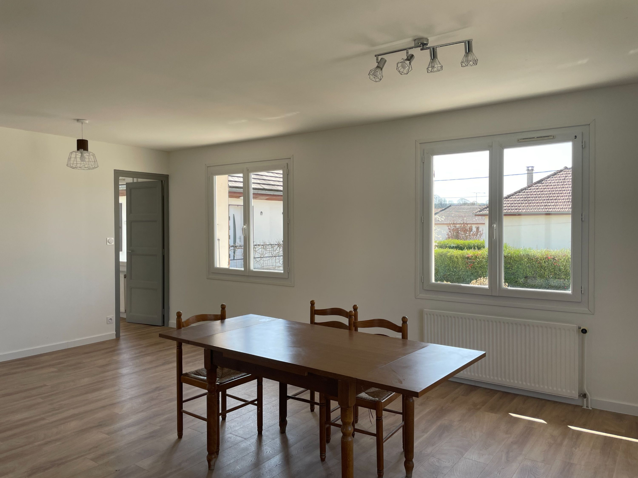 Au bourg de Commenailles, appartement au rez-de-chaussée composé d'une entrée sur pièce de vie avec espace cuisine équipée (ameublement, évier, plaque de cuisson), d'un dégagement desservant deux chambres avec placards de rangements et d'une sal...