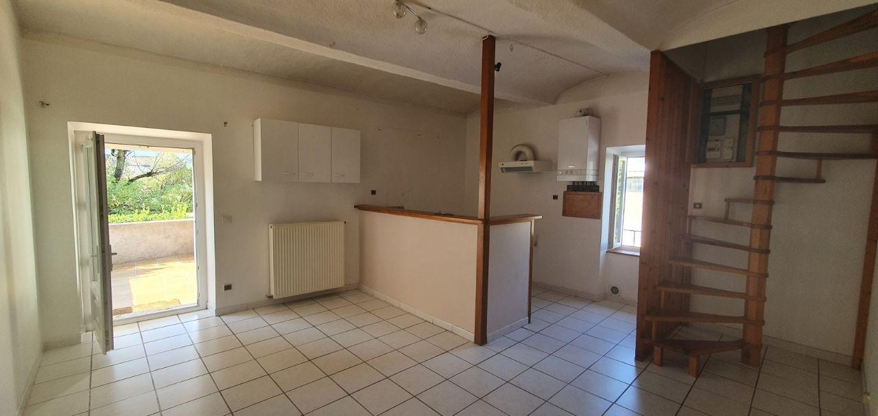 Secteur LA VOULTE SUR RHONE - Appartement F2 rénové lumineux avec sa cuisine équipée et aménagée ouverte sur séjour/chambre/salle d'eau et wc/cave/parking de copropriété