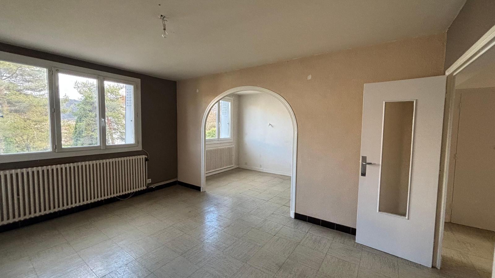 Privas centre - bel appartement de 73 m² dans petite copropriété. Comprenant une entrée/dégagement, une cuisine ouverte sur séjour, un bureau, deux chambres, une salle de bains et wc séparé. Rangements. Cave privative. Proche toute commodités. Chauffage gaz d...