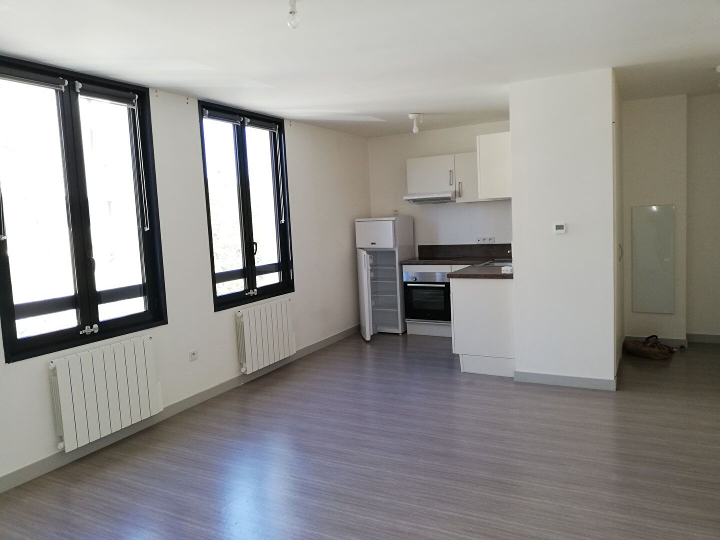 A deux pas du centre-ville et du cinéma, studio de plus de 20 m² comprenant : une pièce principale avec kitchenette (réfrigérateur et plaques électriques) et placard, et une salle de bains avec WC.