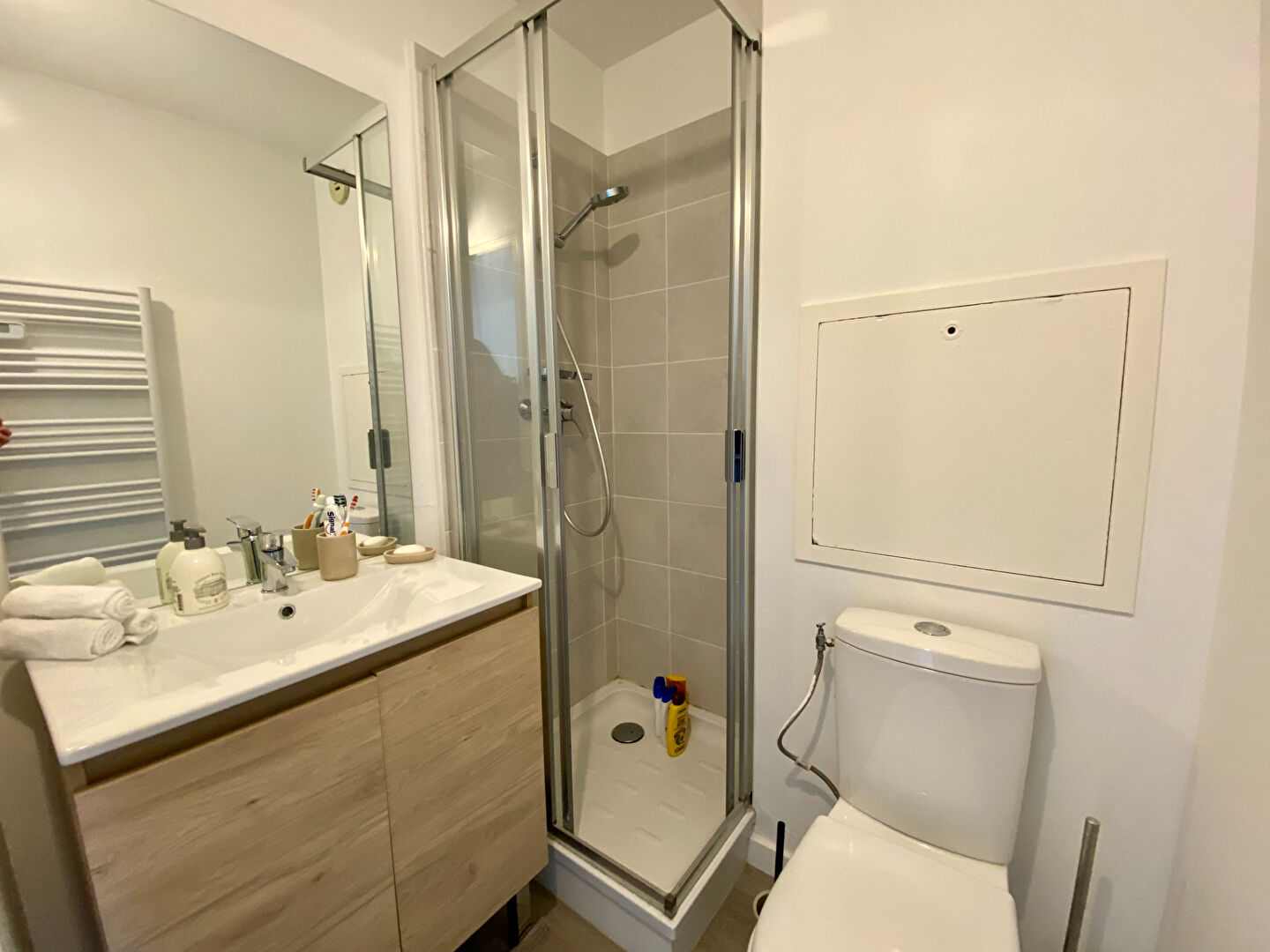 Studio refait à neuf de 21m² dans résidence comprenant : une entrée, une pièce principale avec coin cuisine et placard, une salle d'eau avec WC