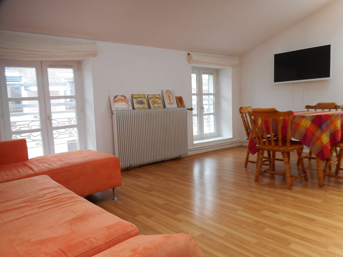 En centre-ville, au 4ème étage avec ascenseur d'une petite copropriété, sans vis-à-vis, grand T1 meublé avec goût, spacieux au style LOFT exposé plein sud.