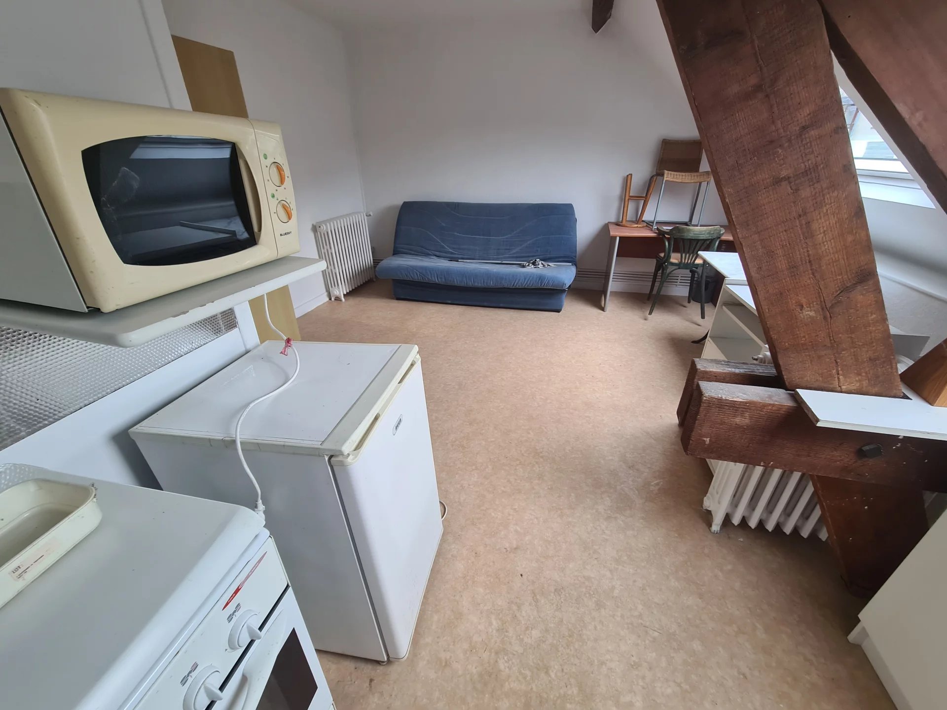 Proche des lycée Edouart Branly et Giraux Sannier Logement refait à neuf, comprenant pièce principale, une chambre, une salle d'eau (douche), une cuisine équipée, une pièce en mezzanine et un WC. Possibilité d'installer une machine à laver. Convecteu...