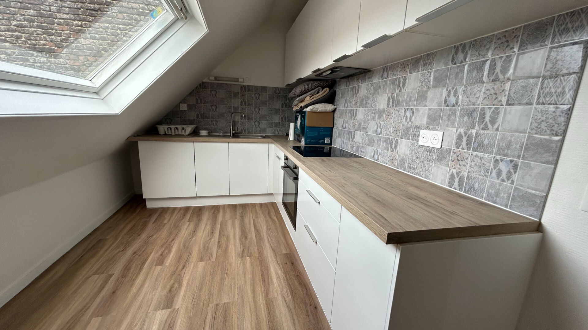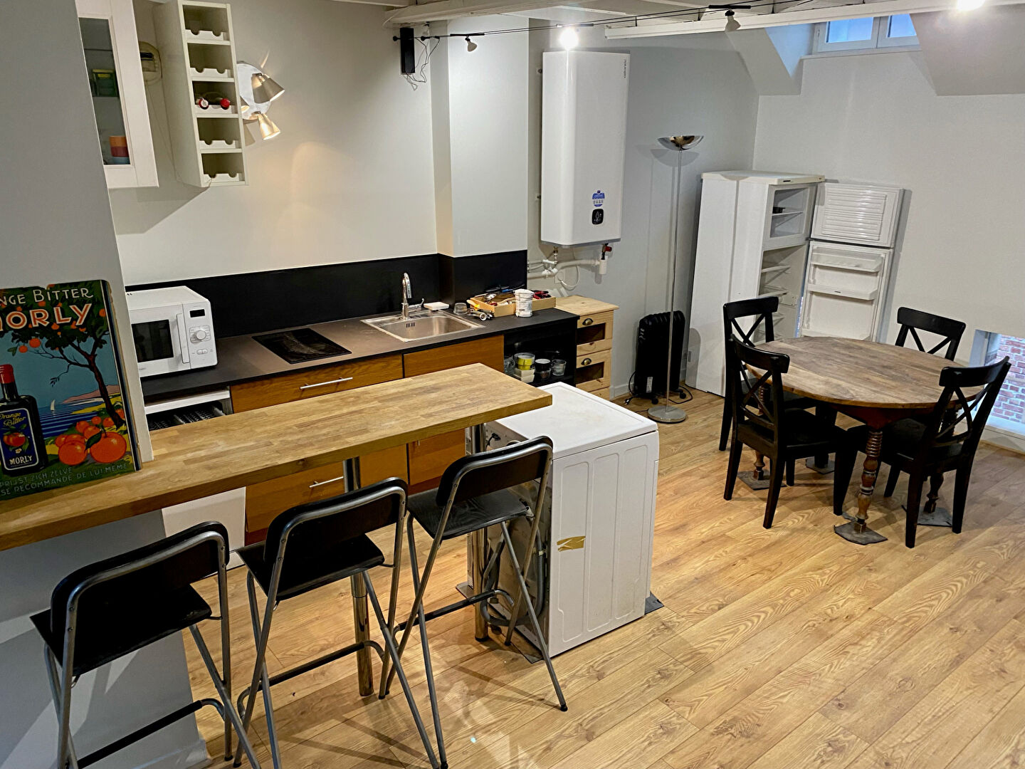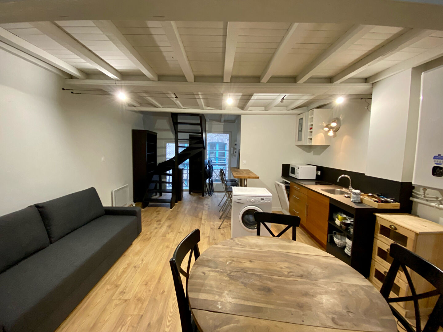 Rue Coquerez, secteur historique du Vieux-Lille, T1Bis en duplex meublé, l'appartement de 38.34 m2 carrez (46.36 au sol) se compose : d'une entrée avec WC donnant sur une belle pièce de vie avec une cuisine équipée et meublée avec lave vaisselle, à l...