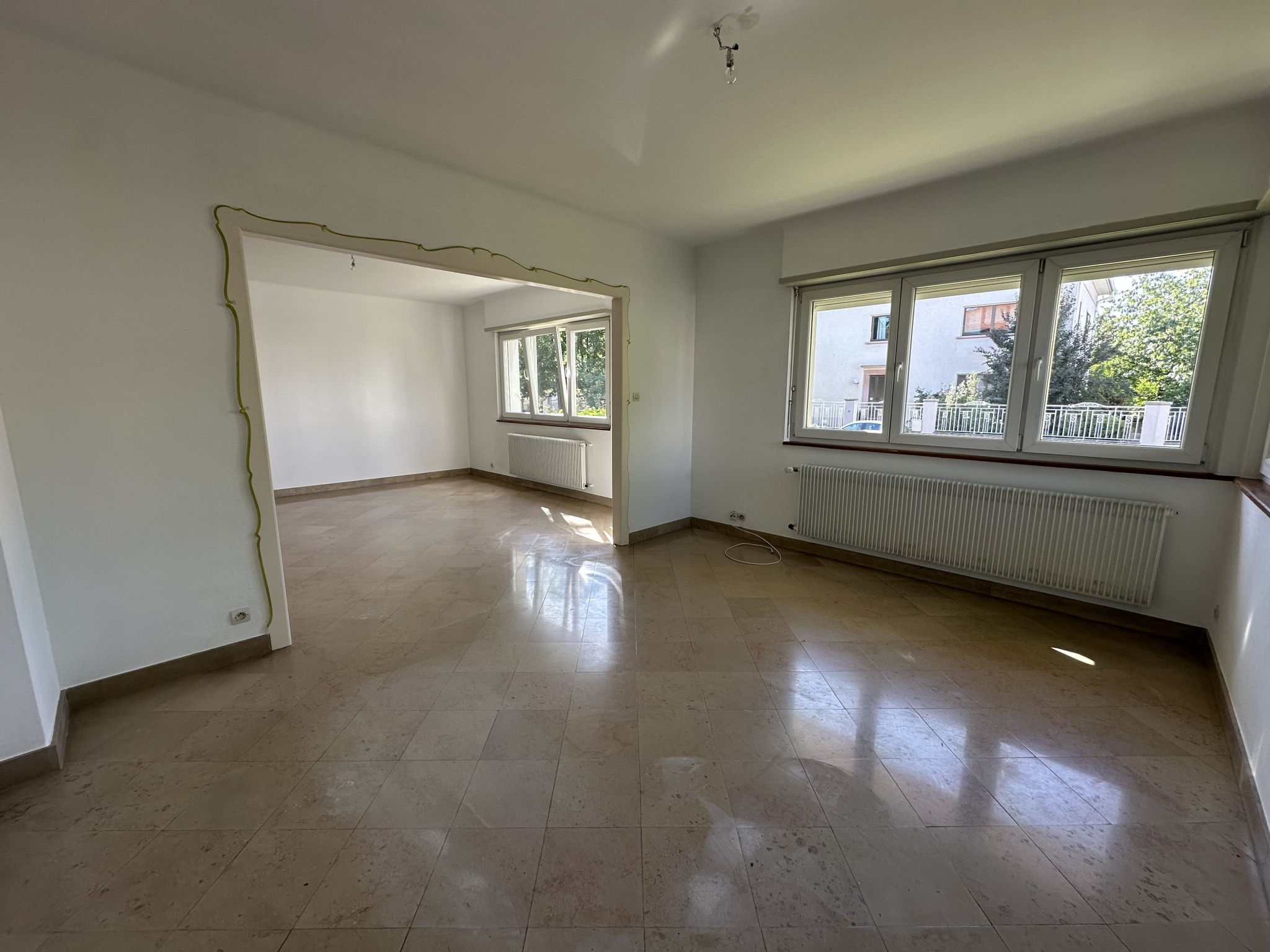 Bel appartement 4 pièces dans un quartier Résidentiel à Sélestat, Rue Dominique Roos, au rez-de-chaussée, d'une surface habitable de 106,89 m2, comprenant une entrée/dégagement, une cuisine équipée, une pièce repas, une salle de bains, un WC, un salon/séj...