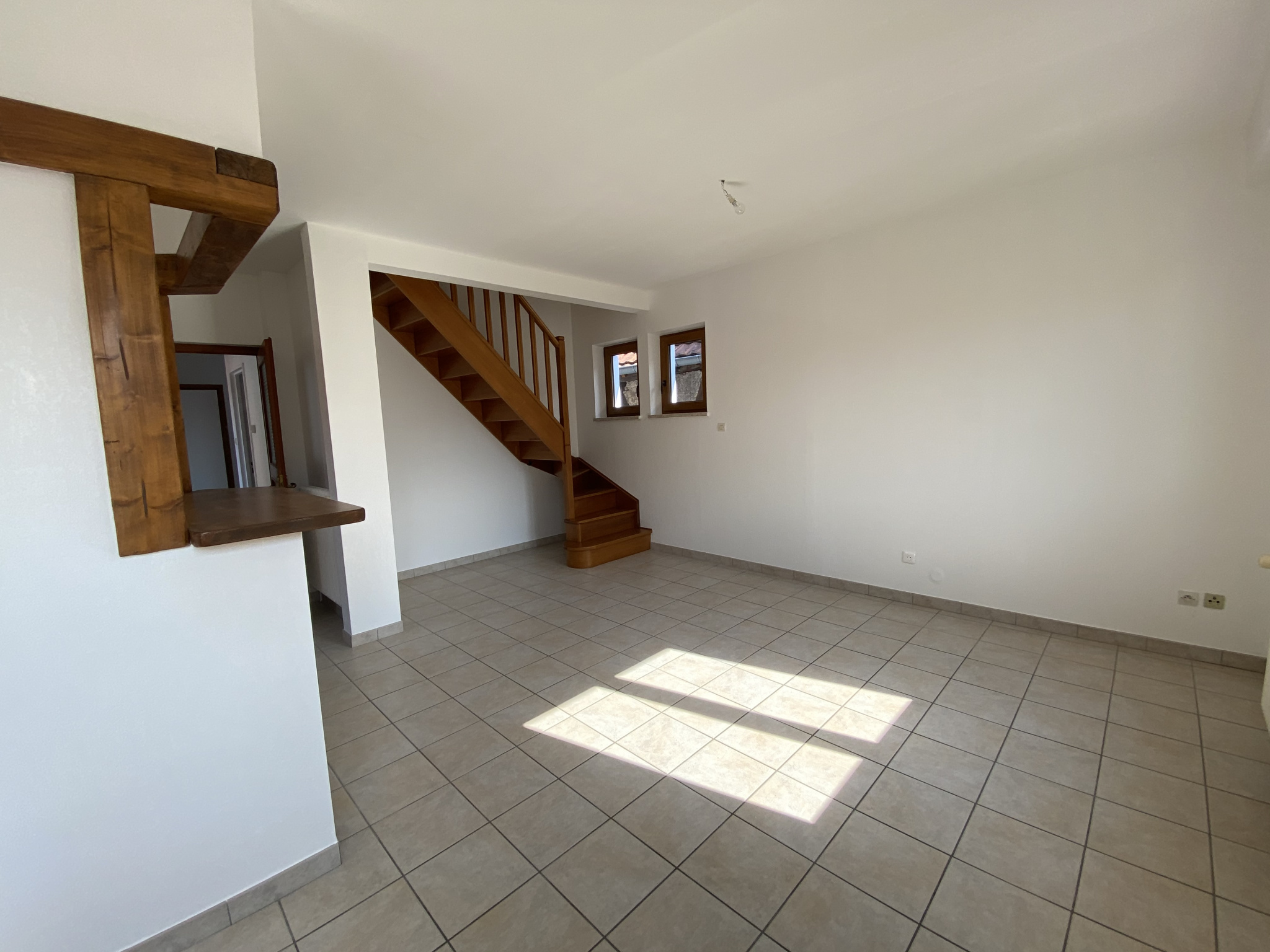 Appartement 3 pièces en duplex situé à Saint-Hippolyte, Rue des Tanneurs, au premier étage sans ascenseur, d'une surface habitable de 70,37m2, comprenant au premier niveau une entrée/dégagement, un séjour, une cuisine équipée ouverte sur le séjour, un bal...