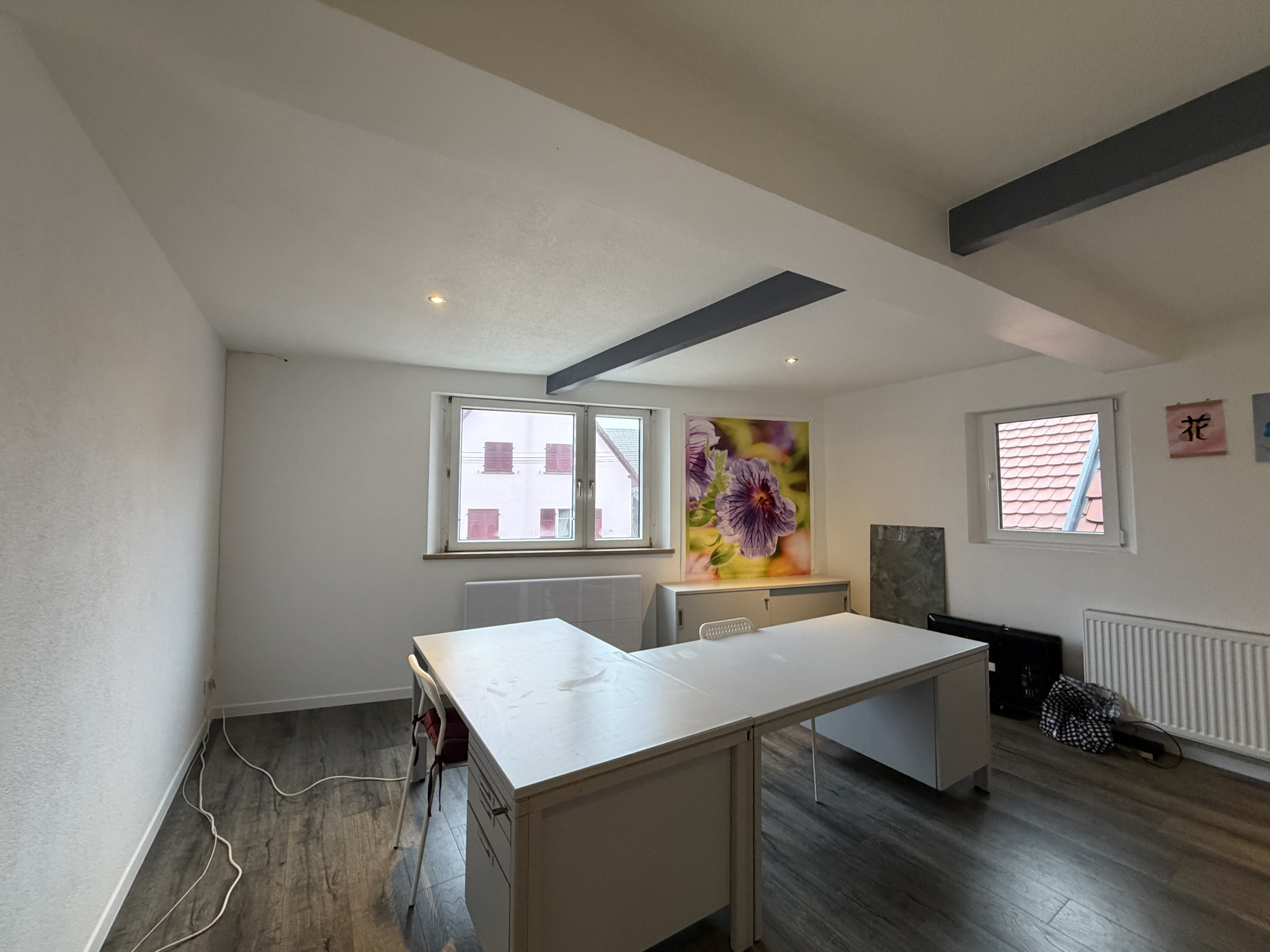 Appartement 4 pièces entièrement repeint en blanc à neuf situé dans le centre-ville de Sélestat, 3 Rue de la Jauge, au 1er étage sans ascenseur, d'une surface habitable de 105m2, comprenant une entrée avec placard, un salon/séjour, une terrasse, une cuisi...