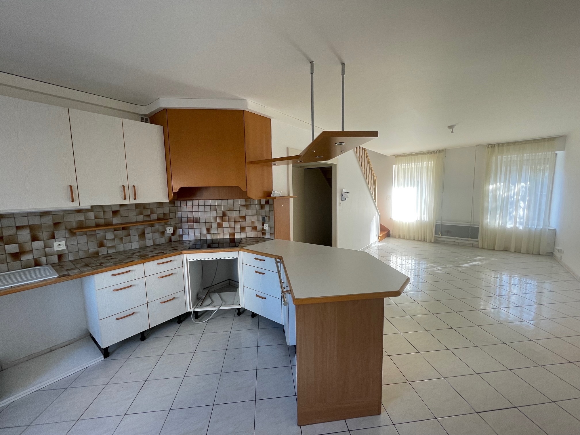 Appartement F3 en duplex situé Rue Mon Désert composé d'une entrée avec placards, pièce de vie ouverte sur cuisine équipée et une chambre. A l'étage une deuxième chambre, une salle de bains et WC.