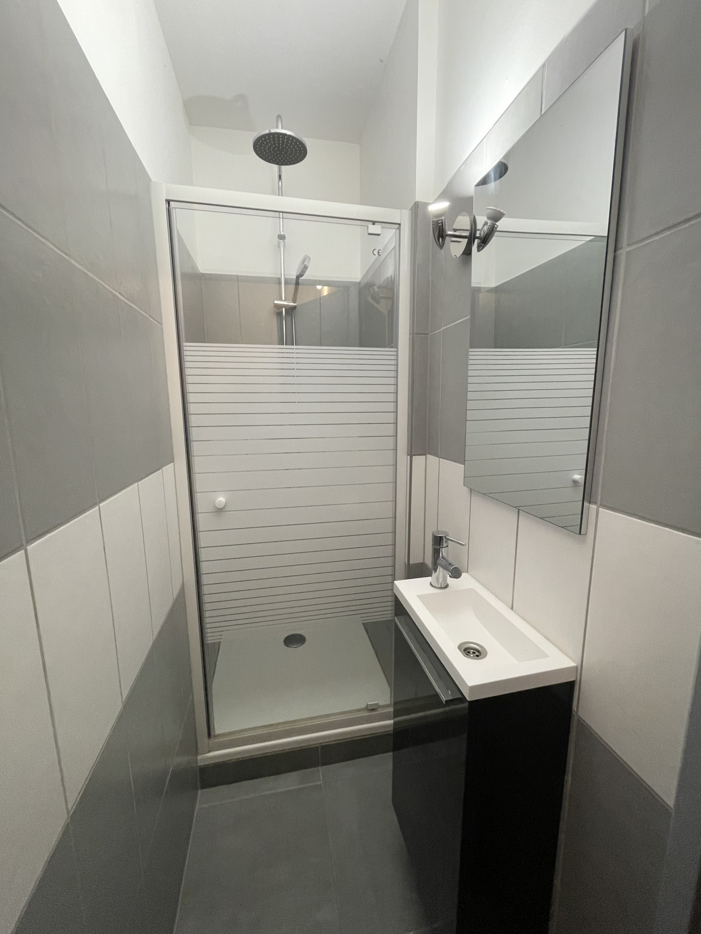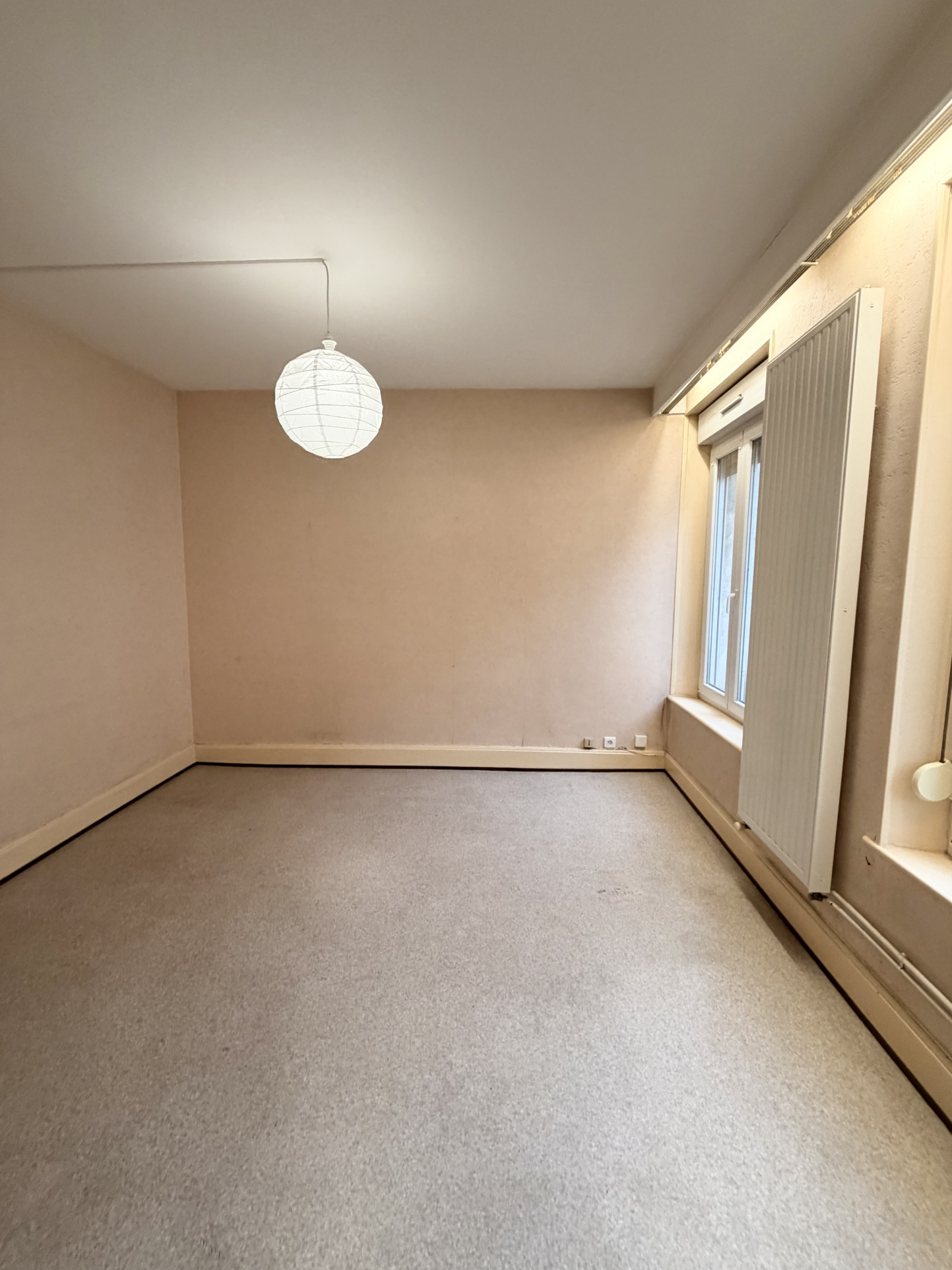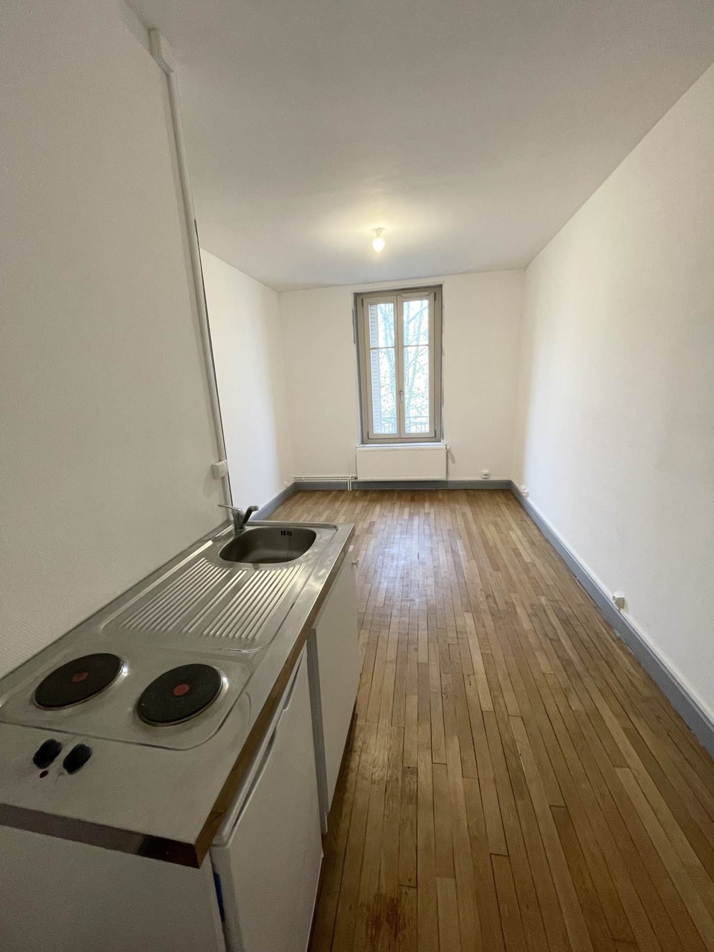 Appartement situé Rue du Général Hoche à Nancy comprenant une pièce principale avec kitchenette, salle d'eau et un espace chambre.