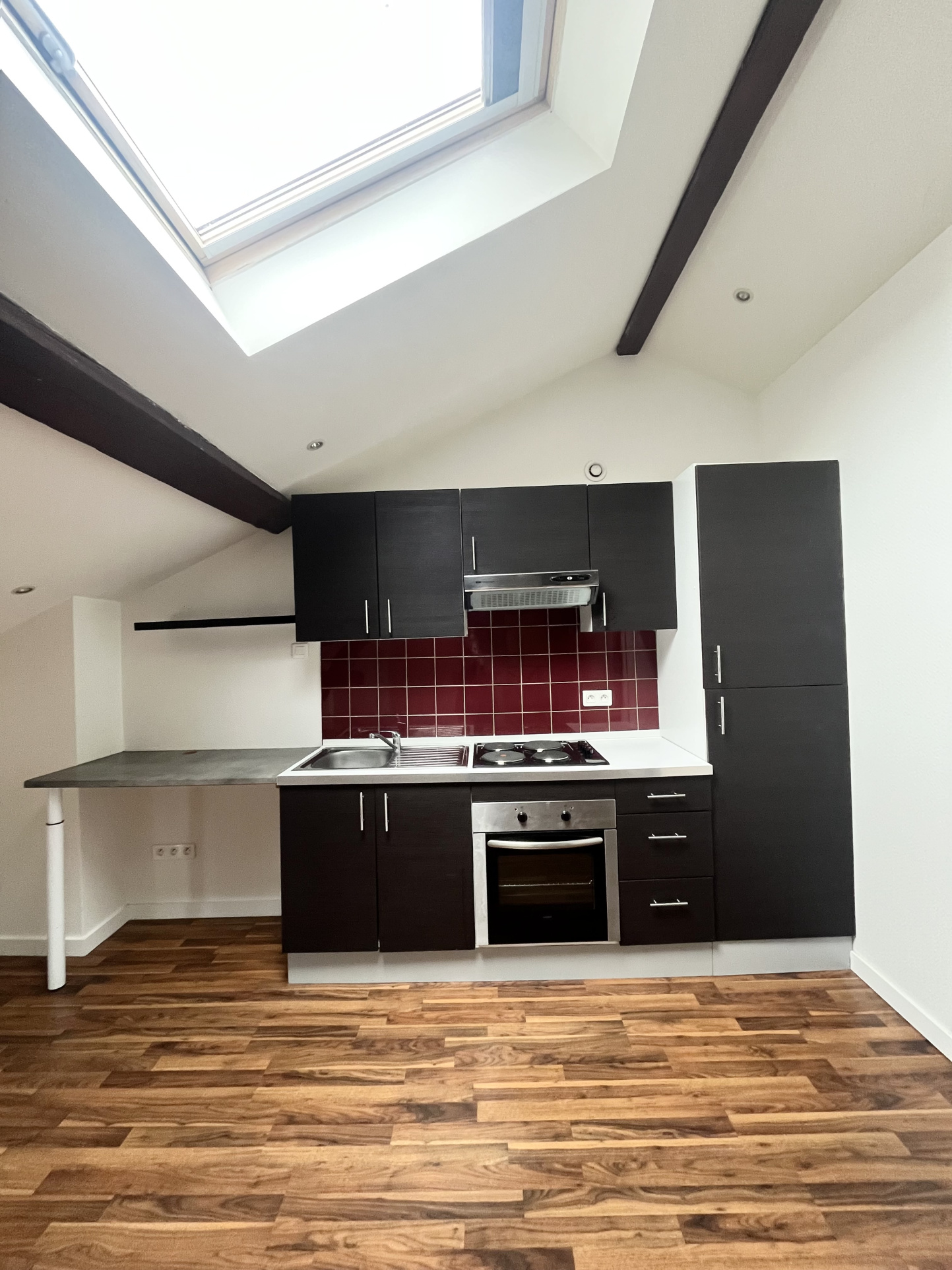 Appartement F2 Rue de l'Imagerie situé au 4ème et dernier étage, composé d'un salon/séjour avec cuisine équipée, une chambre et une salle d'eau avec WC.