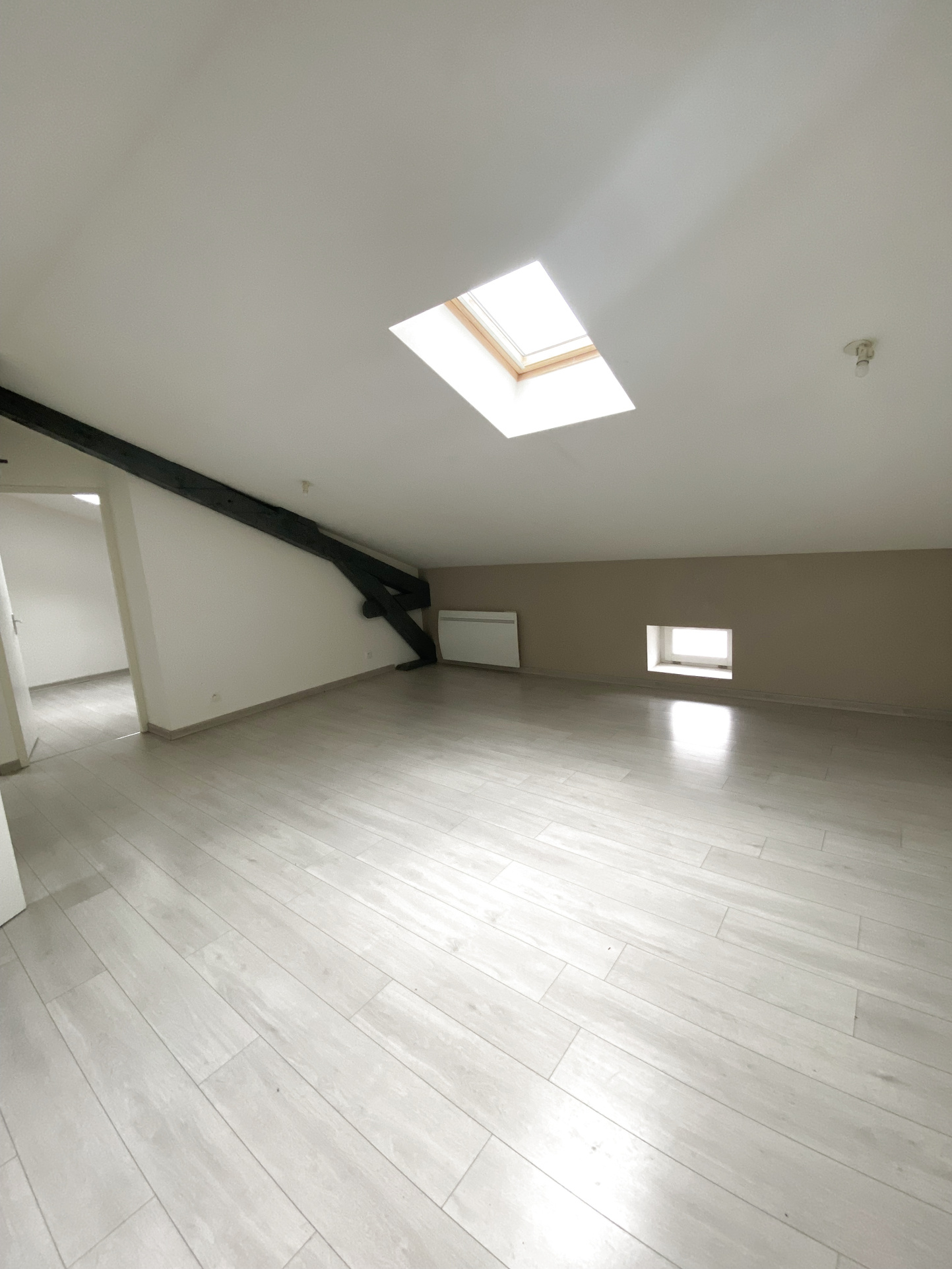 Appartement situé Rue de la République à Jarville composé d'une cuisine ouverte sur séjour, de deux chambres dont une avec acccès à une terrasse, d'une salle de bains et WC.