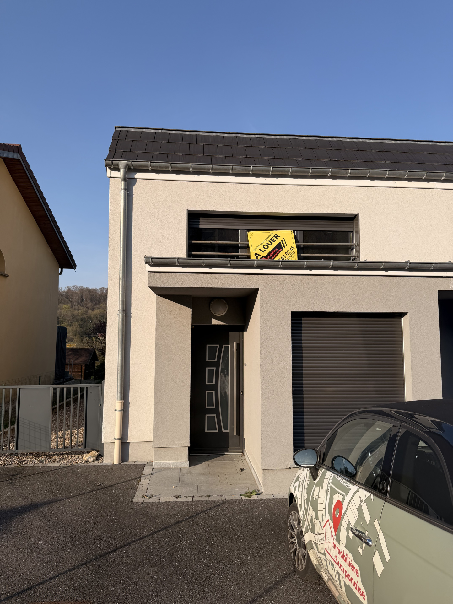 Maison située Rue Jean Jaurès à Marbache composée au rez-de-chaussée d'une entrée, une grande pièce de vie avec une cuisine ouverte sur le salon et un accès direct à la terrasse, d'un WC et d'une buanderie.