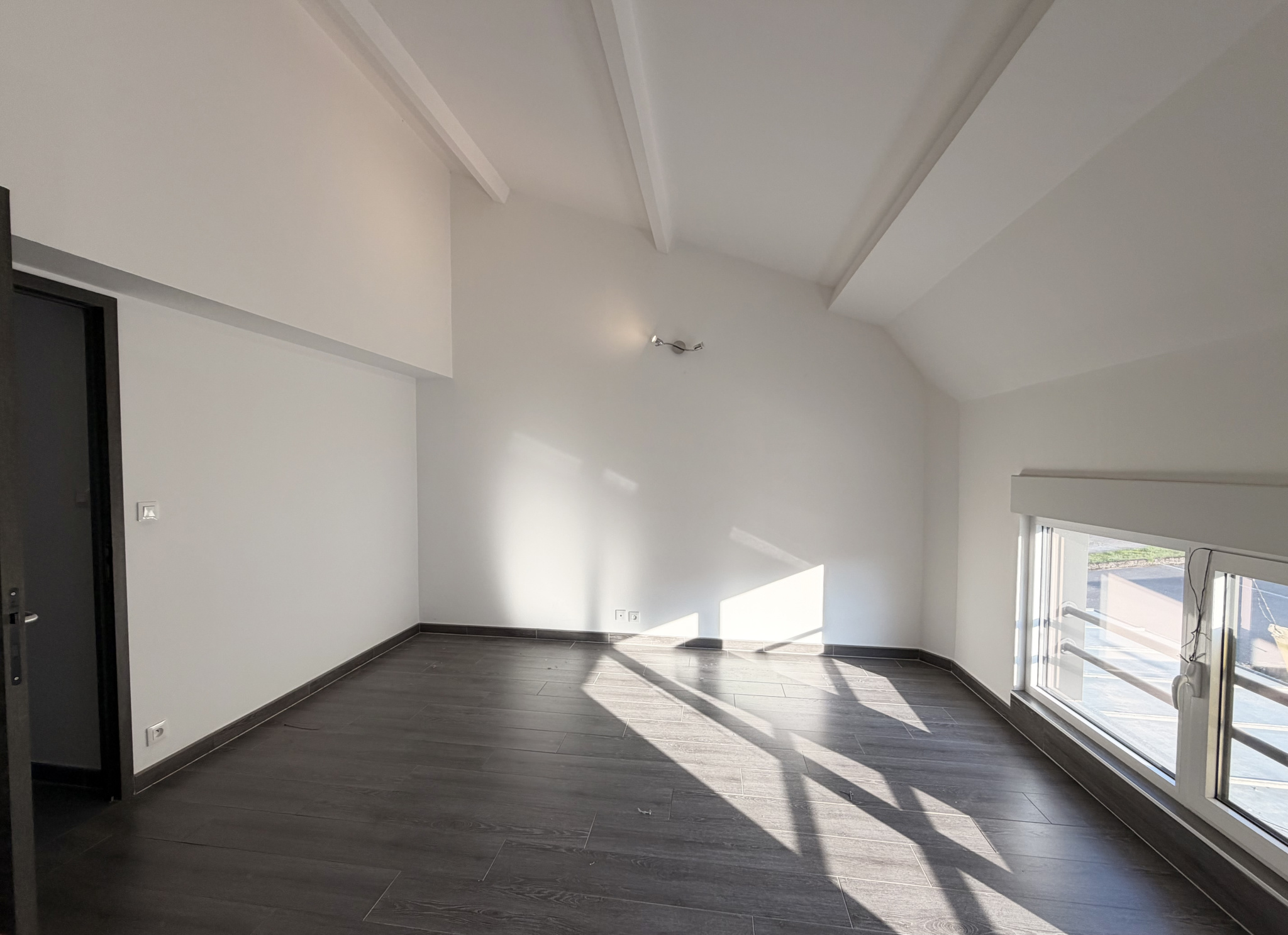 Appartement situé Rue de la Grande Roche à Dieulouard, composé d'une entrée, une cuisine équipée, un salon, une chambre et une salle d'eau.