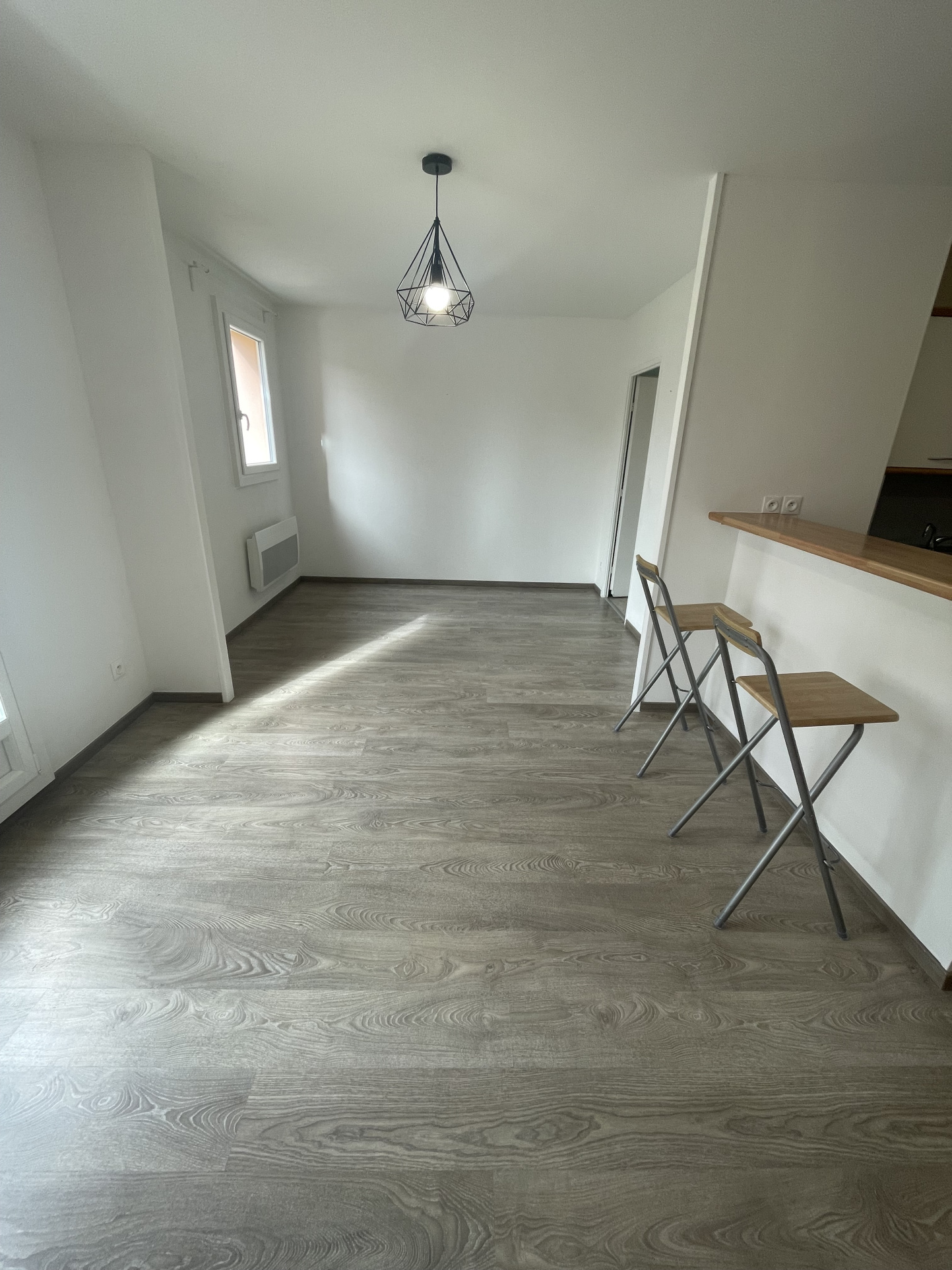 Appartement rénové récemment situé Rue d'Auxonne à Nancy, composé d'une entrée avec rangements, une cuisine équipée ouverte sur le salon, une chambre et une salle d'eau avec WC séparés.