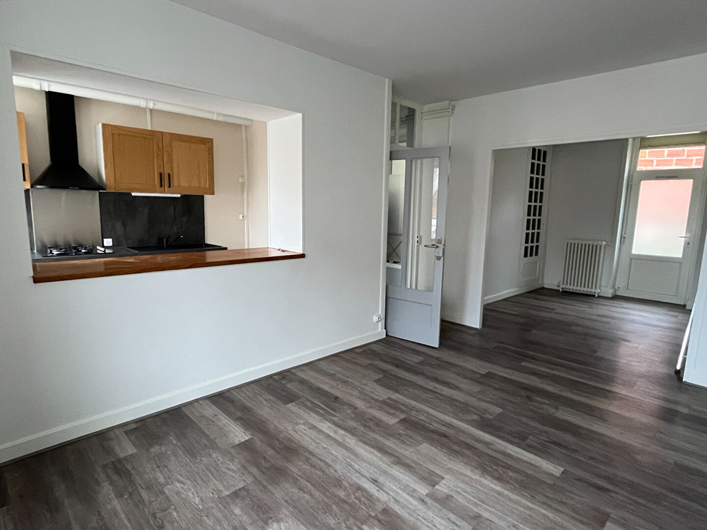 Rue Président Wilson - Appartement T3 d'environ 55m² au 1er étage d'un petit immeuble, entièrement rénové en 2023, comprenant une entrée, une cuisine équipée ouverte sur séjour, salle d'eau, WC , une chambre et un grand bureau.