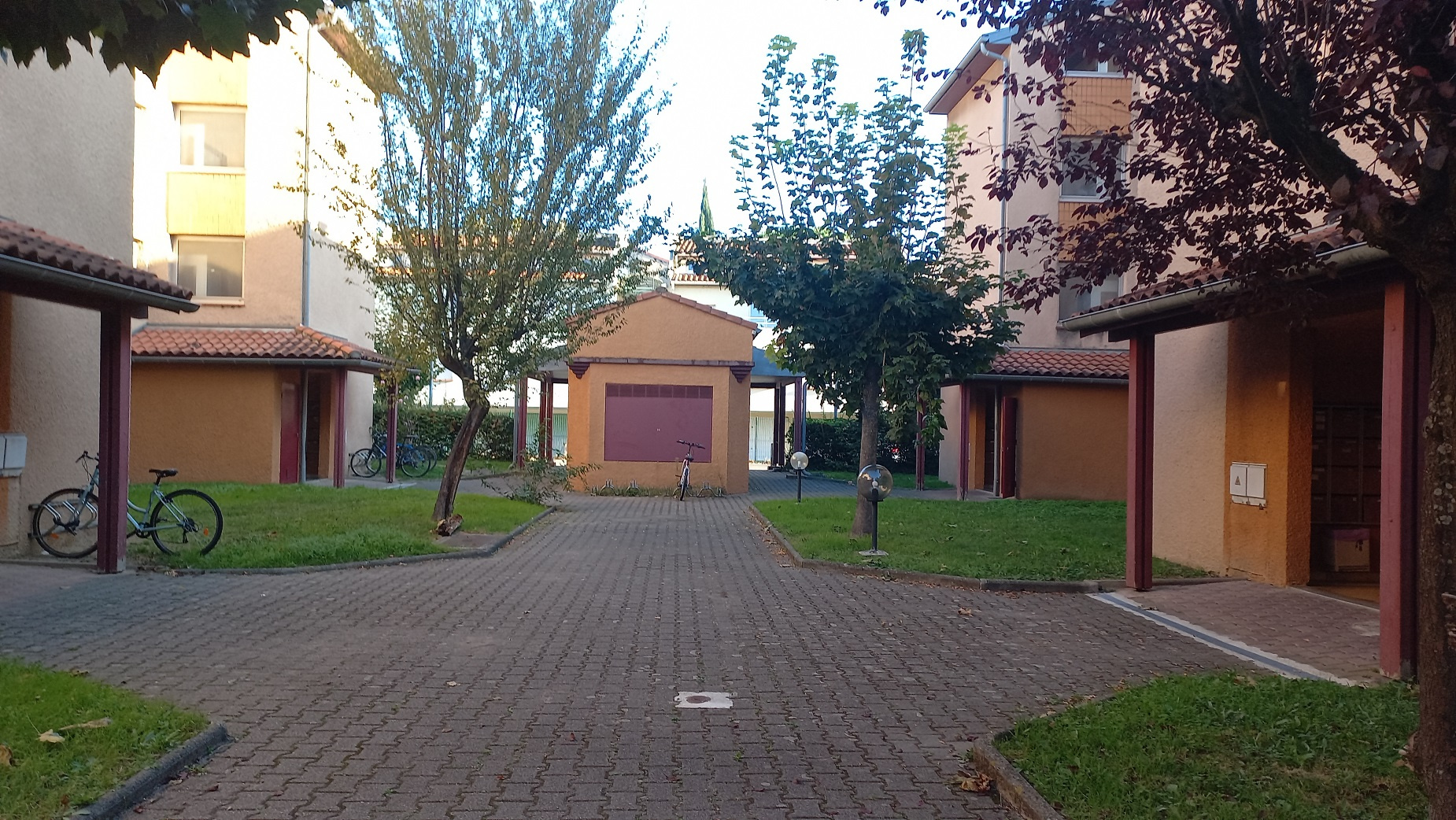 31270 VILLENEUVE TOLOSANE proche Cugnaux, garage à louer de 18m2 avec parcelle privative. Porte basculante et portillon d'accès au jardinet. Disponible le 28/10/2025