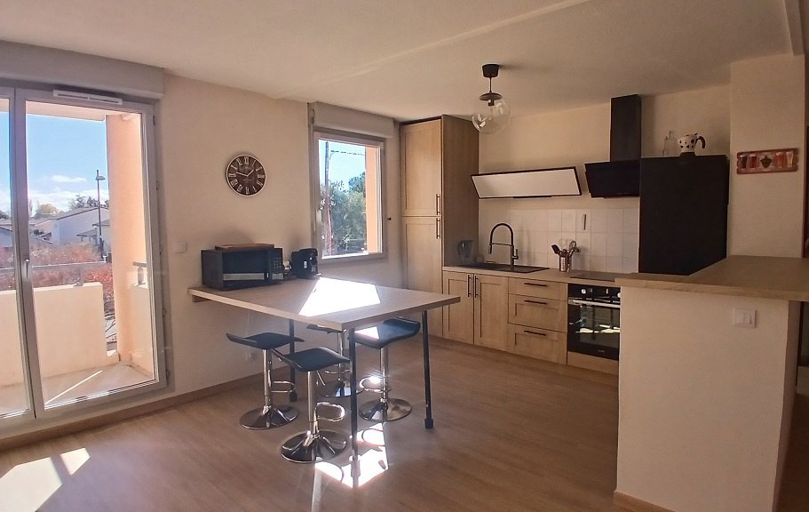 31650; ST-ORENS-DE-GAMEVILLE: Au 1er et dernier étage d'une résidence fermée, située 7 rue de Nazan: Loue appartement traversant de type 3, d'une superficie habitable de 60.66 m2 avec balcon de 15m2, deux empla...