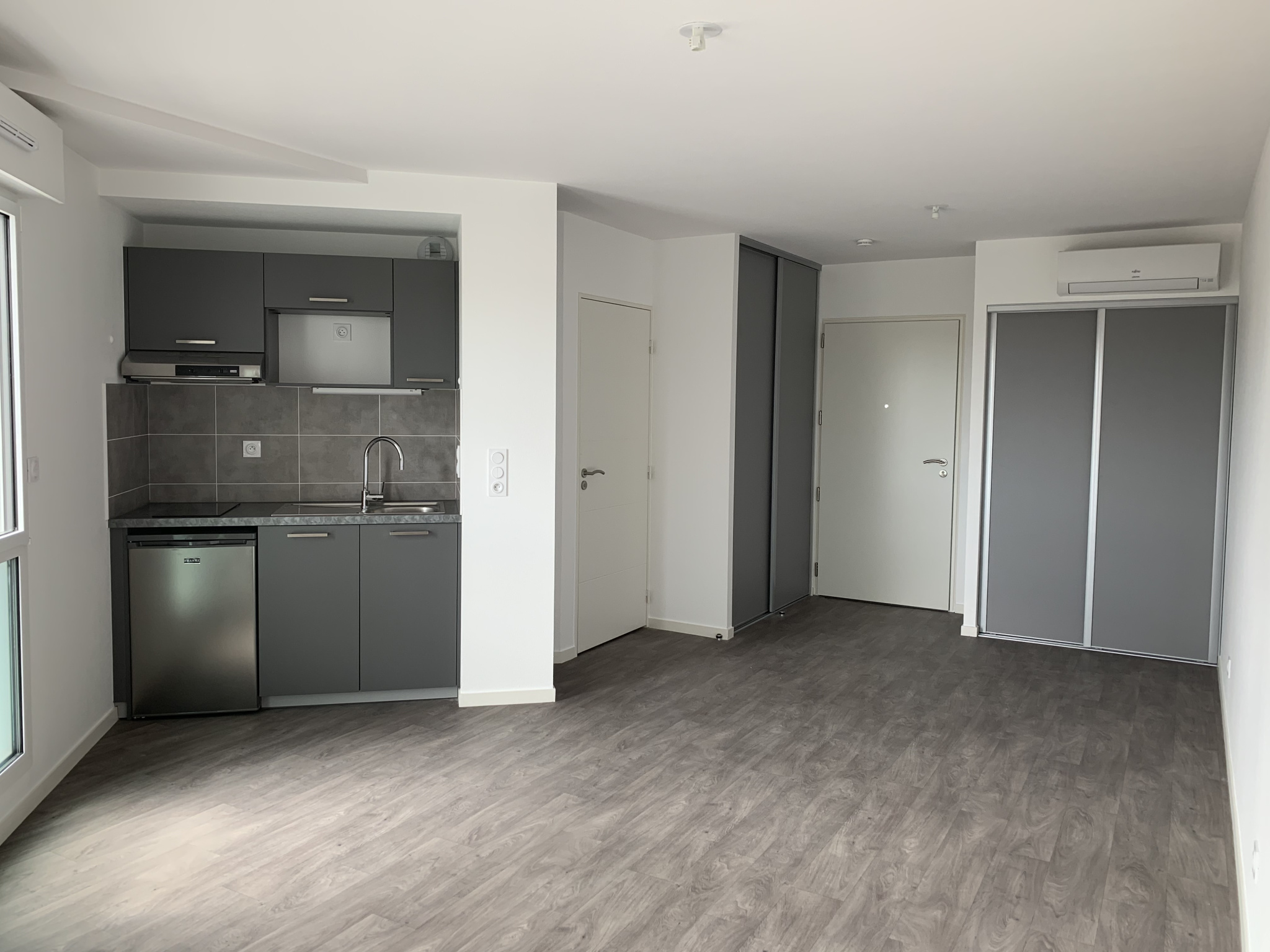 Il comprend : entrée, cuisine équipée (éléments, plaque de cuiss...