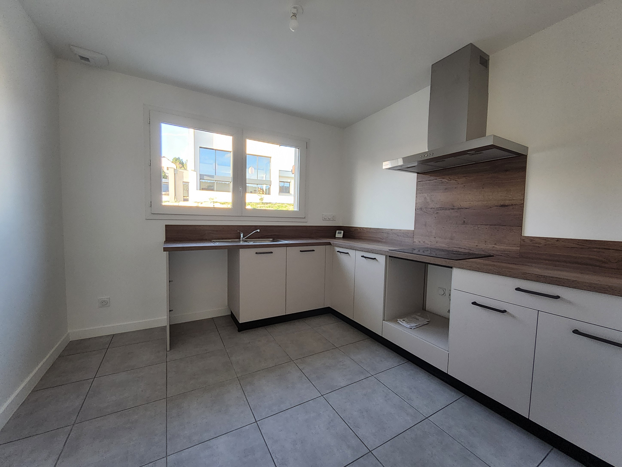 Il comprend : cuisine équipée (éléments, plaque vitrocéramique et hotte) ouverte sur...
