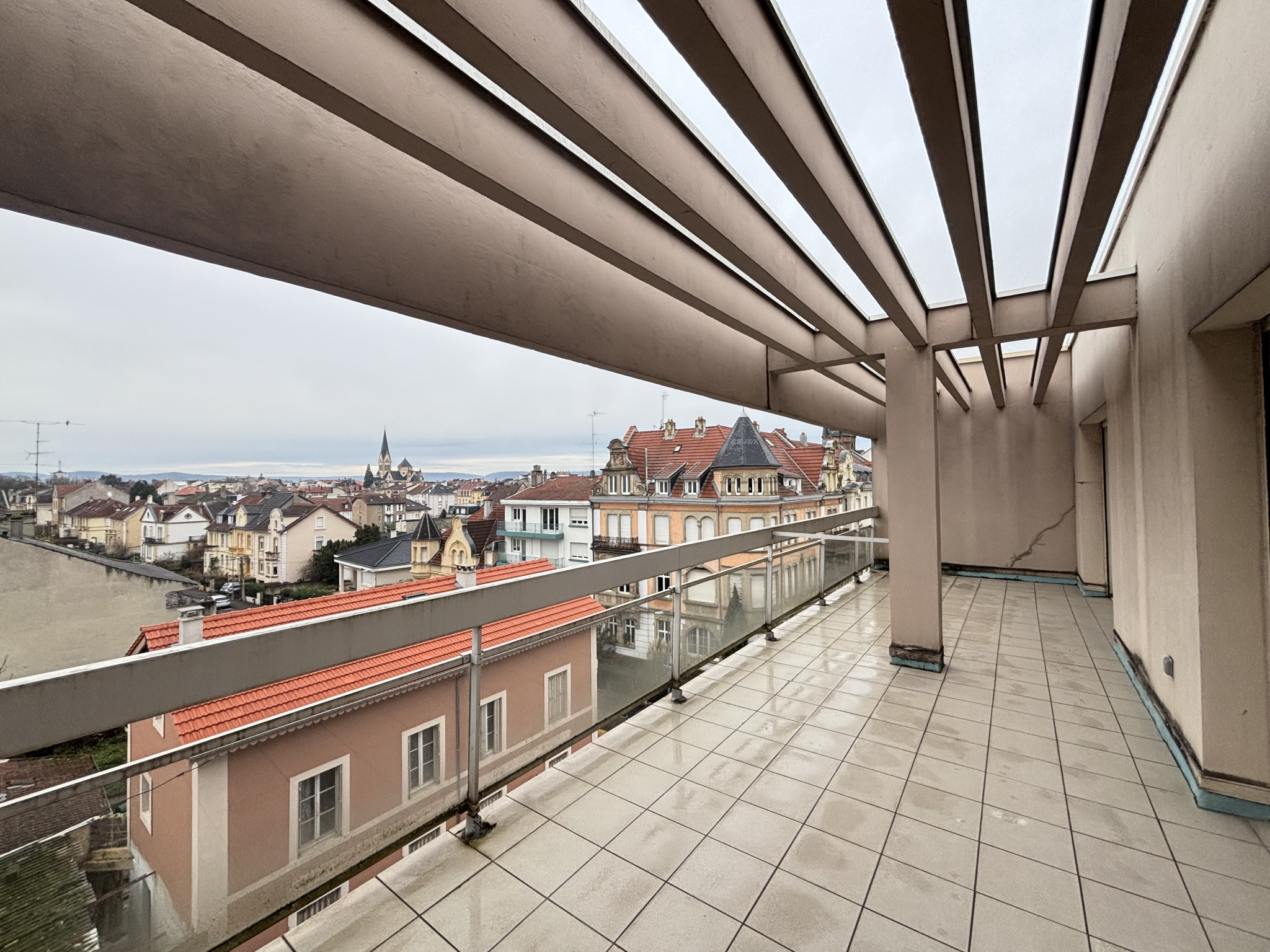 Appartement de type 2 pièces de 39 m2 avec grande terrasse de 20 m2 au dernier étage, vue imprenable, cuisine aménagée. L'appartement dispose d'un stationnement à l'arrière de l'immeuble et d'une cave. Proximité commerces et transports...