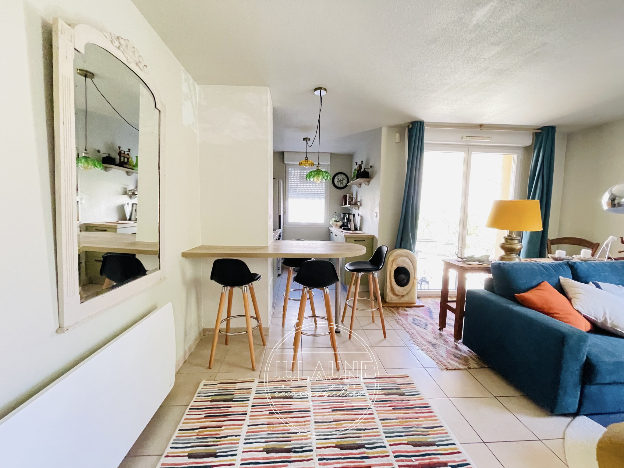 Julaune immobilier vous propose cette belle maison composée d'un grand salon-séjour (30m2) d'une belle cuisine équipée, de deux belles chambres (13,7 et 11m2) ains...