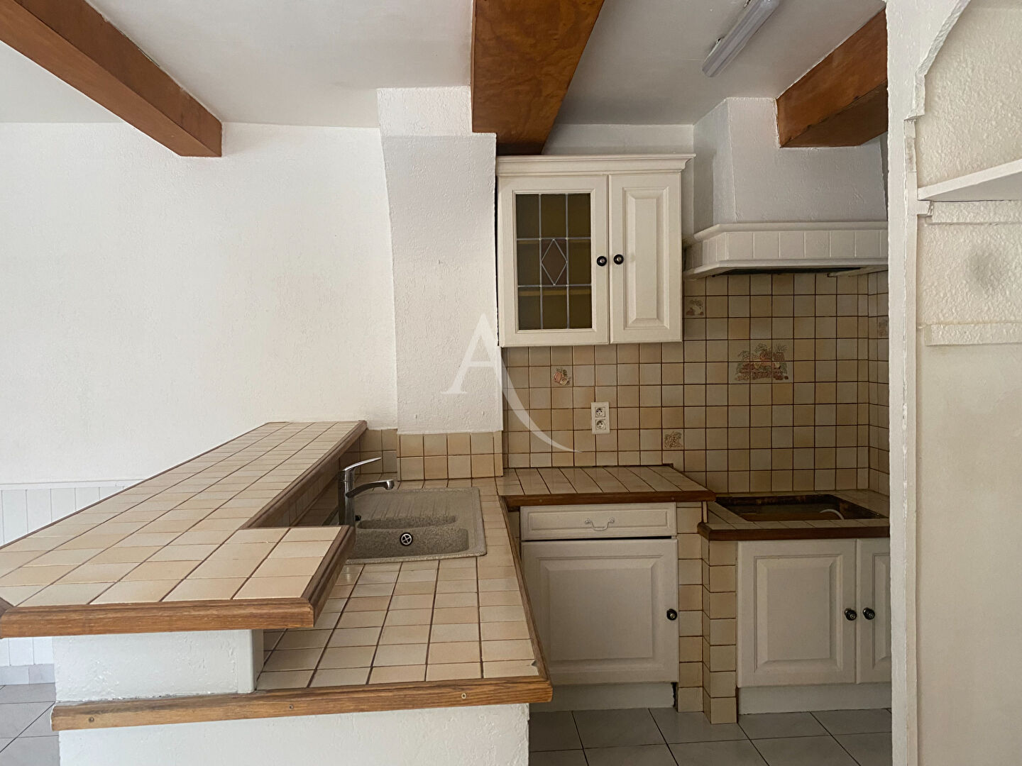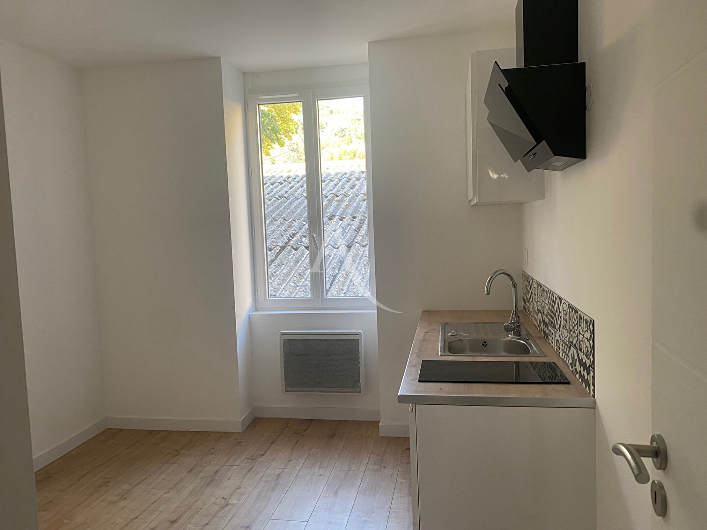 Joli studio en duplex, comprenant une pièce principale avec un coin cuisine/séjour, une salle d'eau avec WC et un escalier menant à la mezzanine.