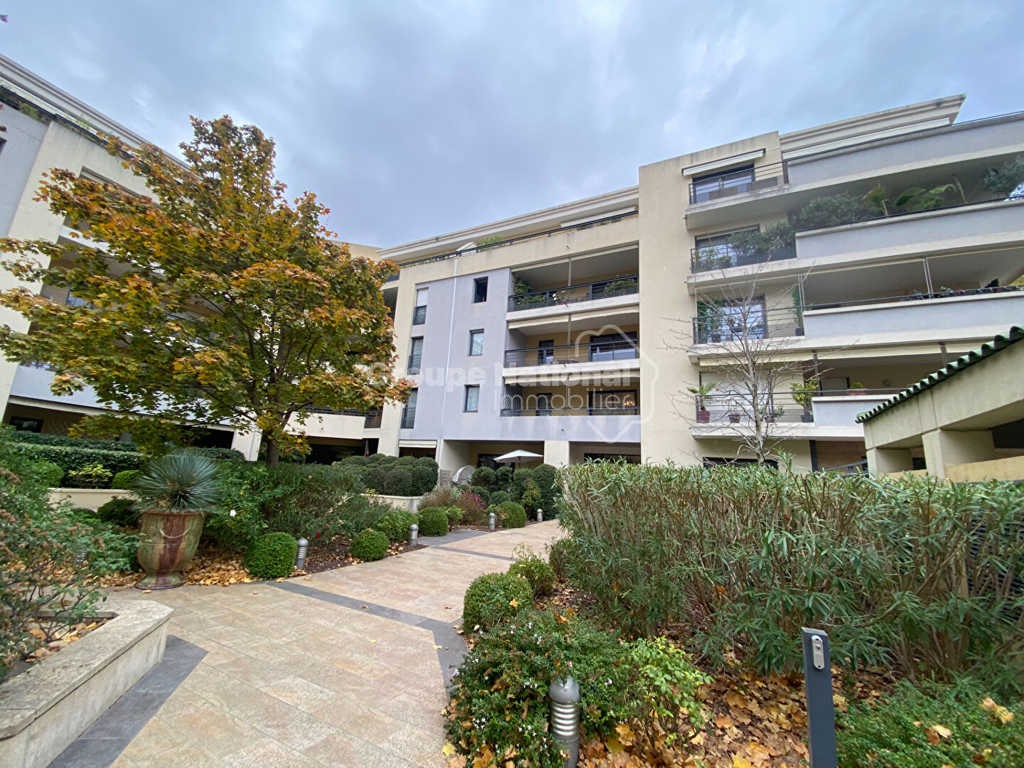 Place de stationnement privative sécurisée dans une résidence bien entretenue avec portail automatique.