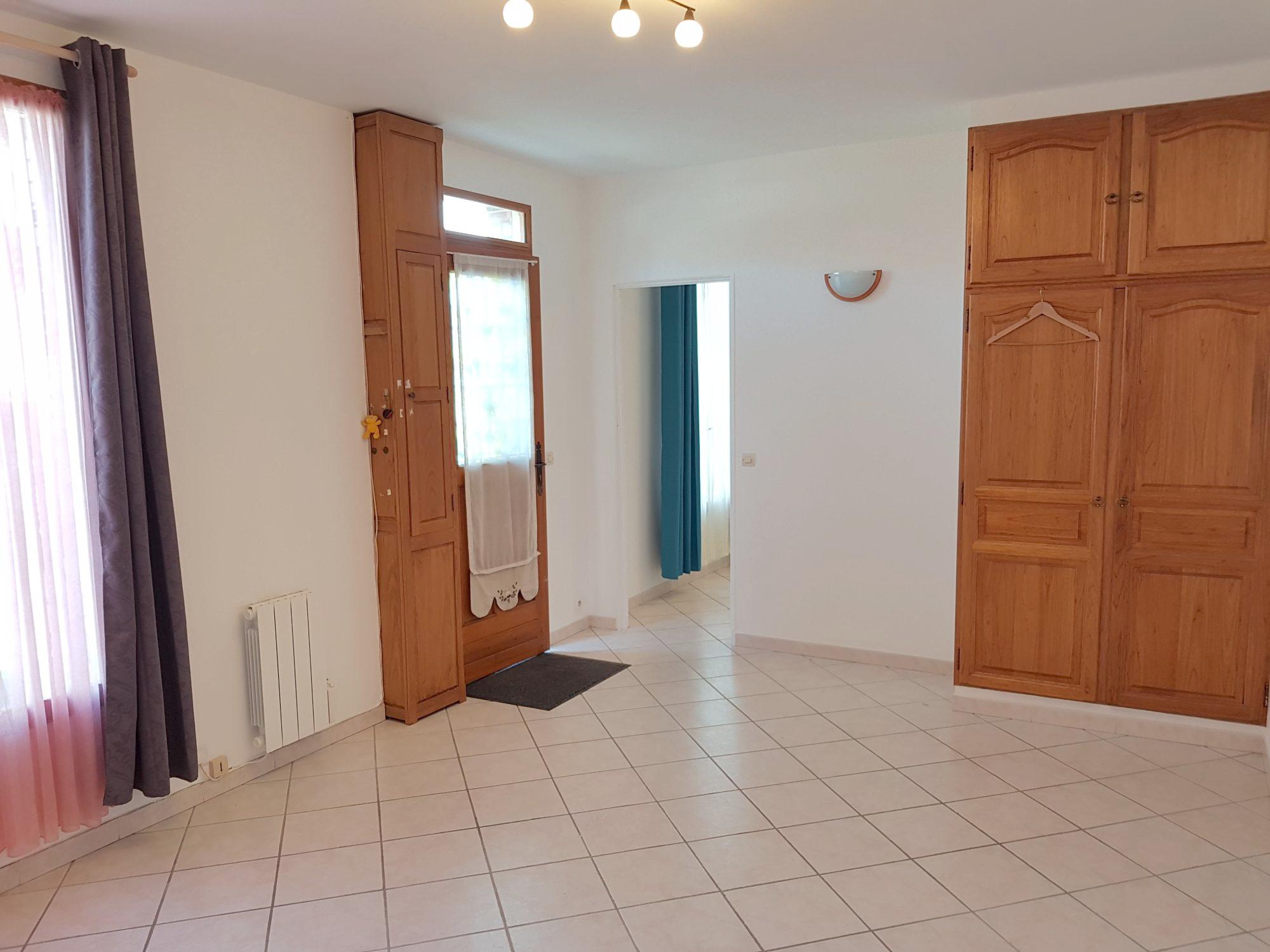 Appartement T2 au centre du village comprenant une entrée, une cuisine aménagée, un séjour, une salle de bains, un wc et une chambre.