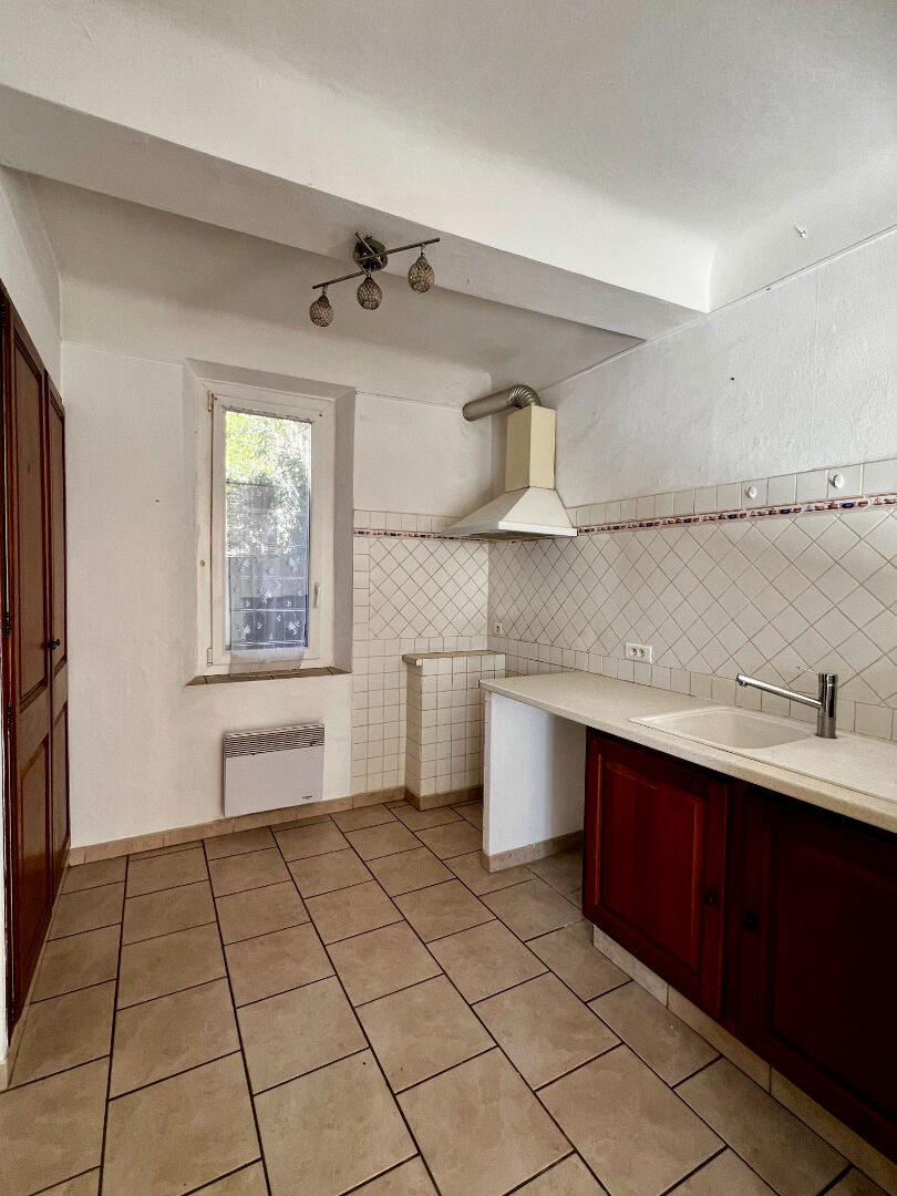 Au premier étage : une cuisine ouverte sur le séjour, un WC et une terrasse.