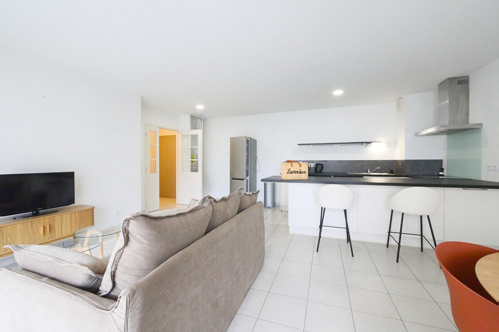 Appartement T3 MEUBLE de 69,07 m² habitables, au premier étage d'une résidence calme et sécurisée comprenant entrée avec placard, grand séjour avec cuisine de 33,89 m², 2 chambres avec placard, salle d'eau, WC séparés, ainsi q...