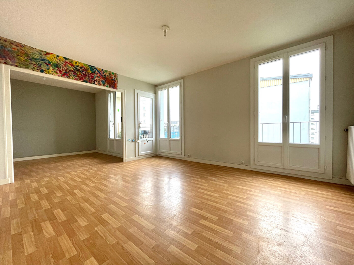 BEL APPARTEMENT T5 AU 3ème ÉTAGE COMPRENANT : HALL D'ENTRÉE AVEC PLACARD, SÉJOUR DOUBLE, CUISINE AMÉNAGÉE ET ÉQUIPÉE (PLAQUES, HOTTE), DÉGAGEMENT AVE...