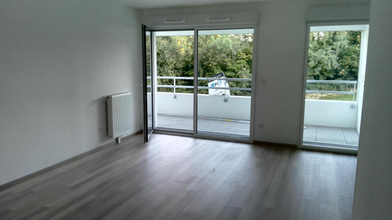 A LOUER - BOUGUENAIS - Appartement T3 de 56,14m² - Appartement T3 de 56,14m², en rez-de-chaussée, donnant sur une petite cour ouverte, le logement s'ouvre sur une pièce de vie avec cuisine aménagée et équipée (hotte, plaques, four, et lave vaisselle). 2 c...