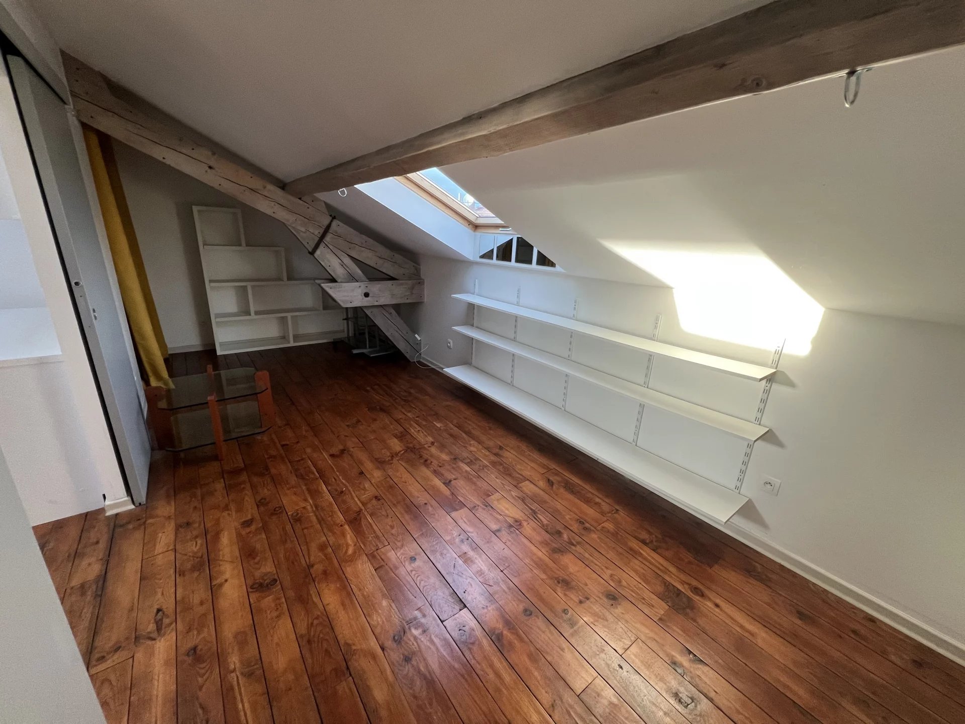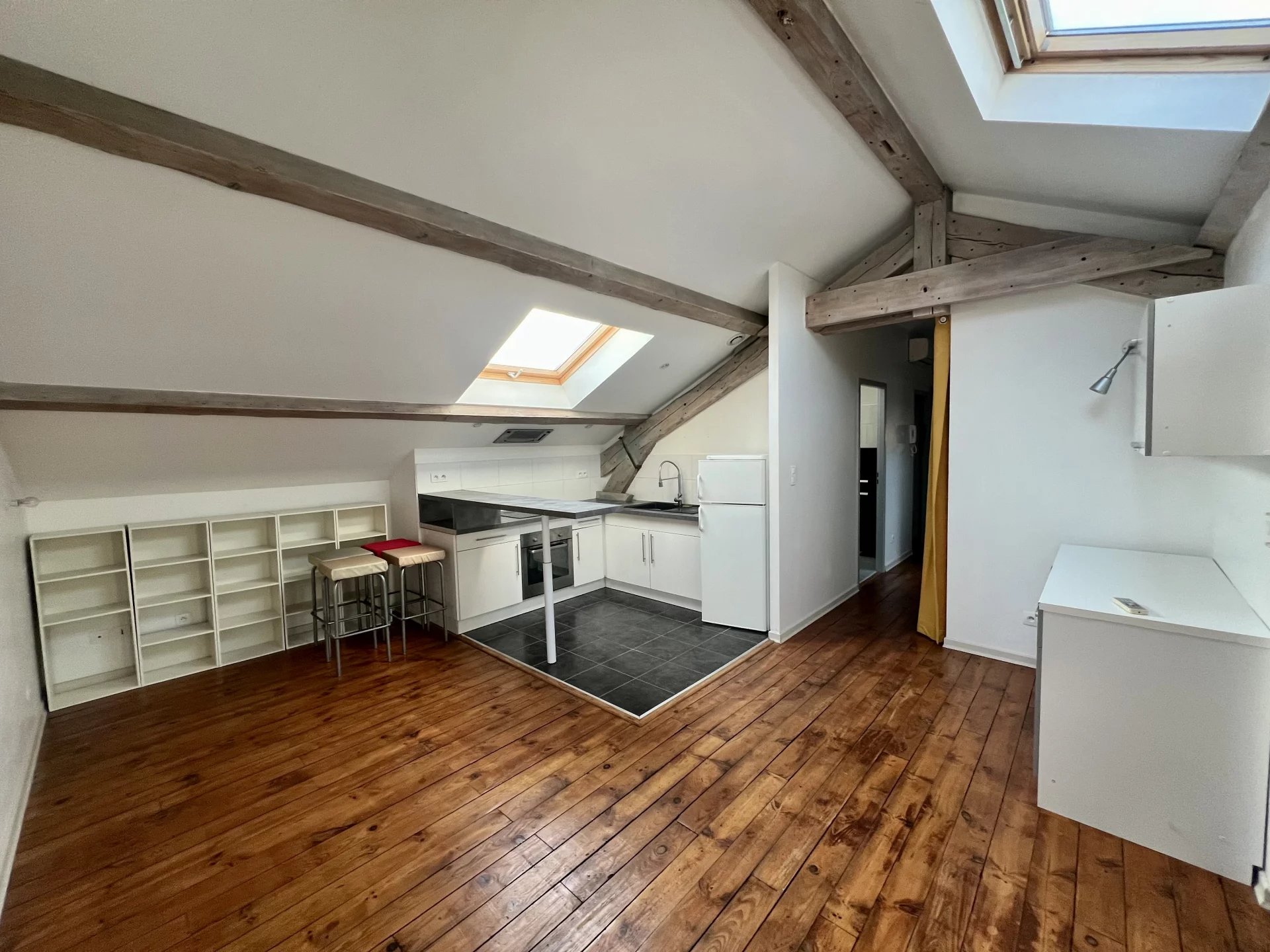 Appartement T2bis dans un quartier calme et agréable avec des poutres apparentes se composant d'un séjour ouvert sur une cuisine meublée et équipée, d'un espace salon transformable en chambre, d'une chambre avec un placard, d'une salle de b...
